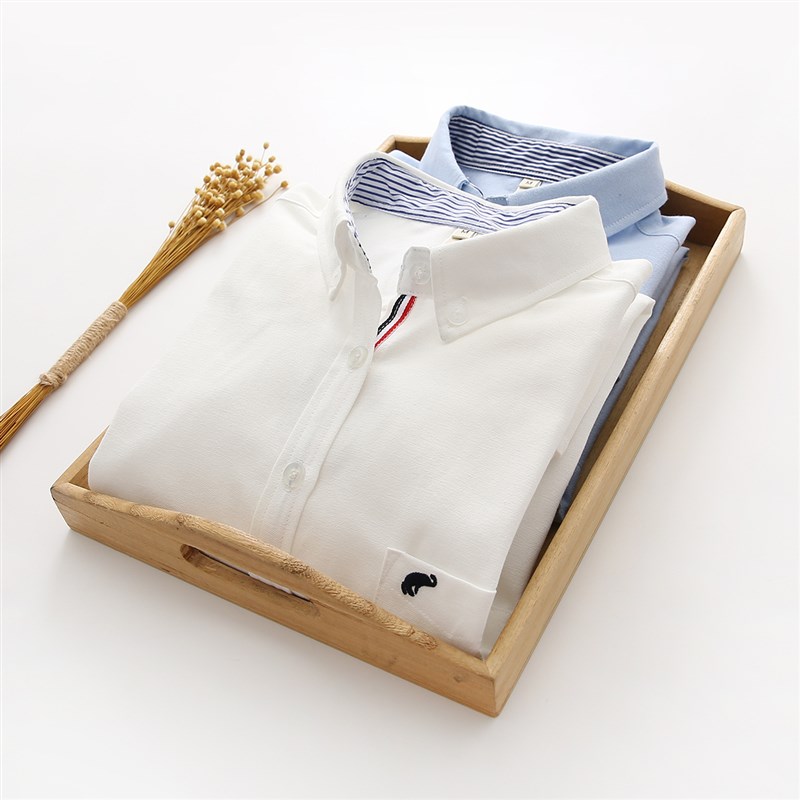 2021秋季新款学生文艺牛津纺衬衫女长袖学院风宽松百搭打底衬衣