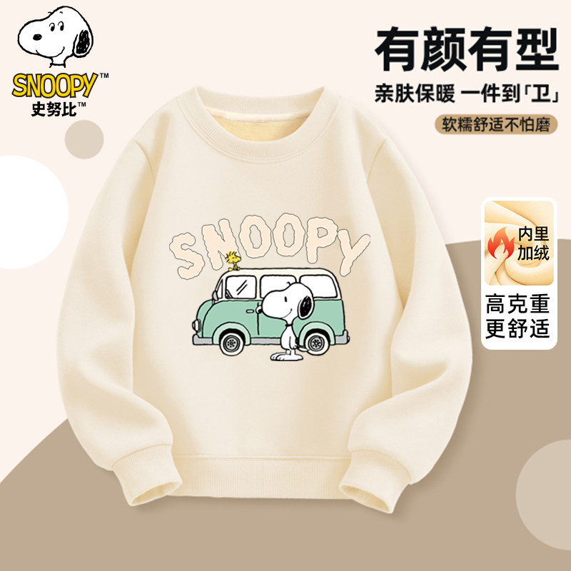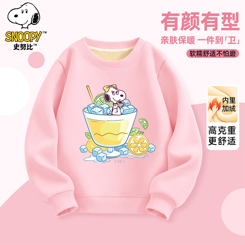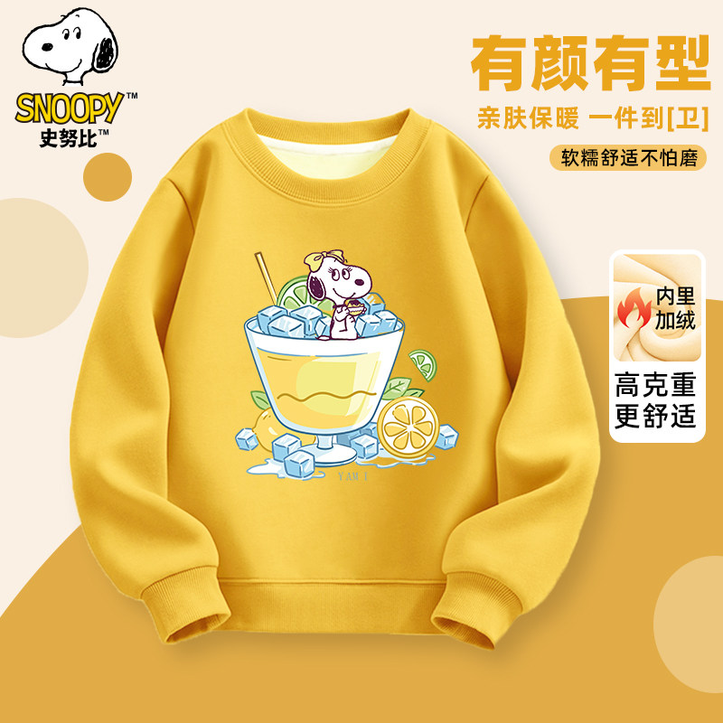 史努比童装秋冬新款加绒圆领卫衣儿童长袖加绒多色套头衫冬款上衣