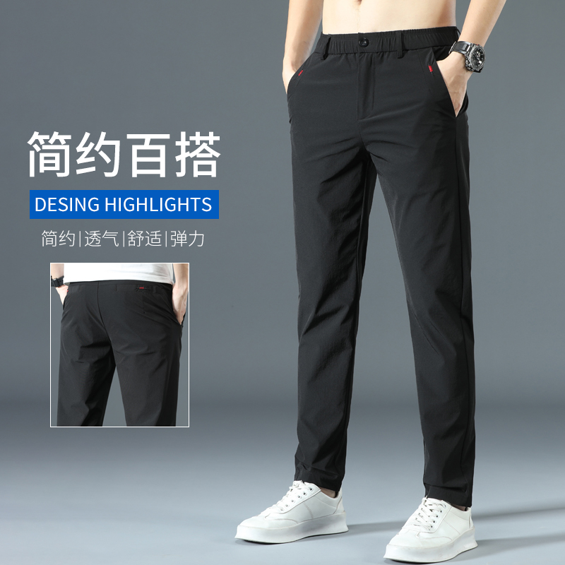 罗蒙速干冰丝裤男款休闲长裤男士裤子夏季薄款宽松直筒弹力运动裤