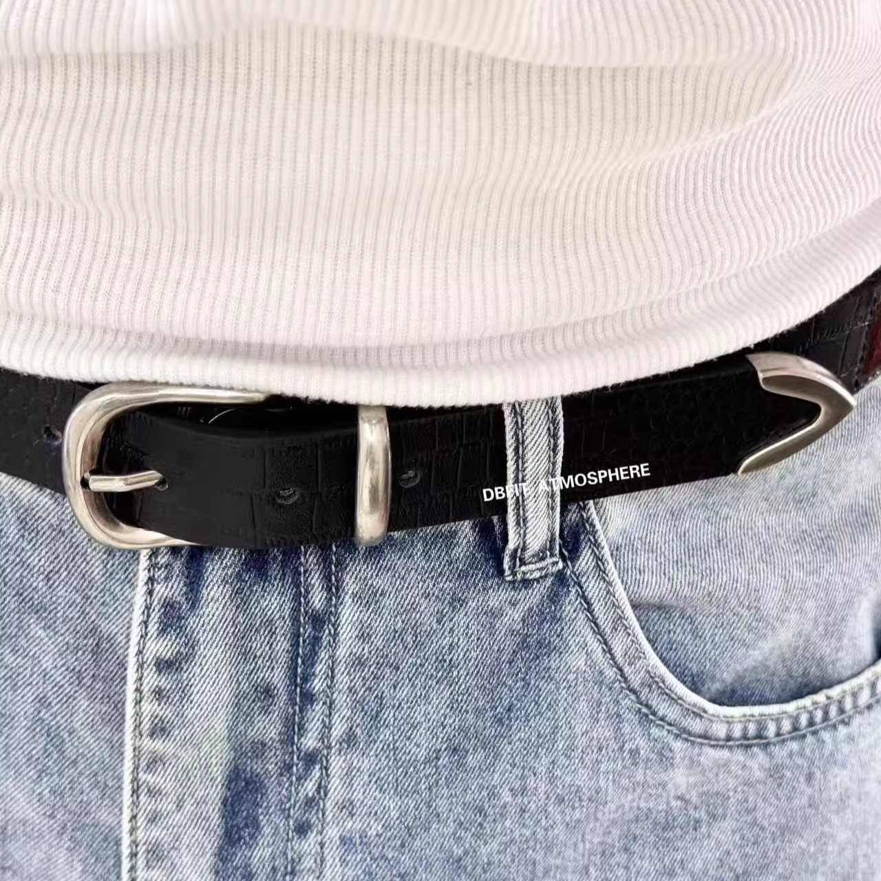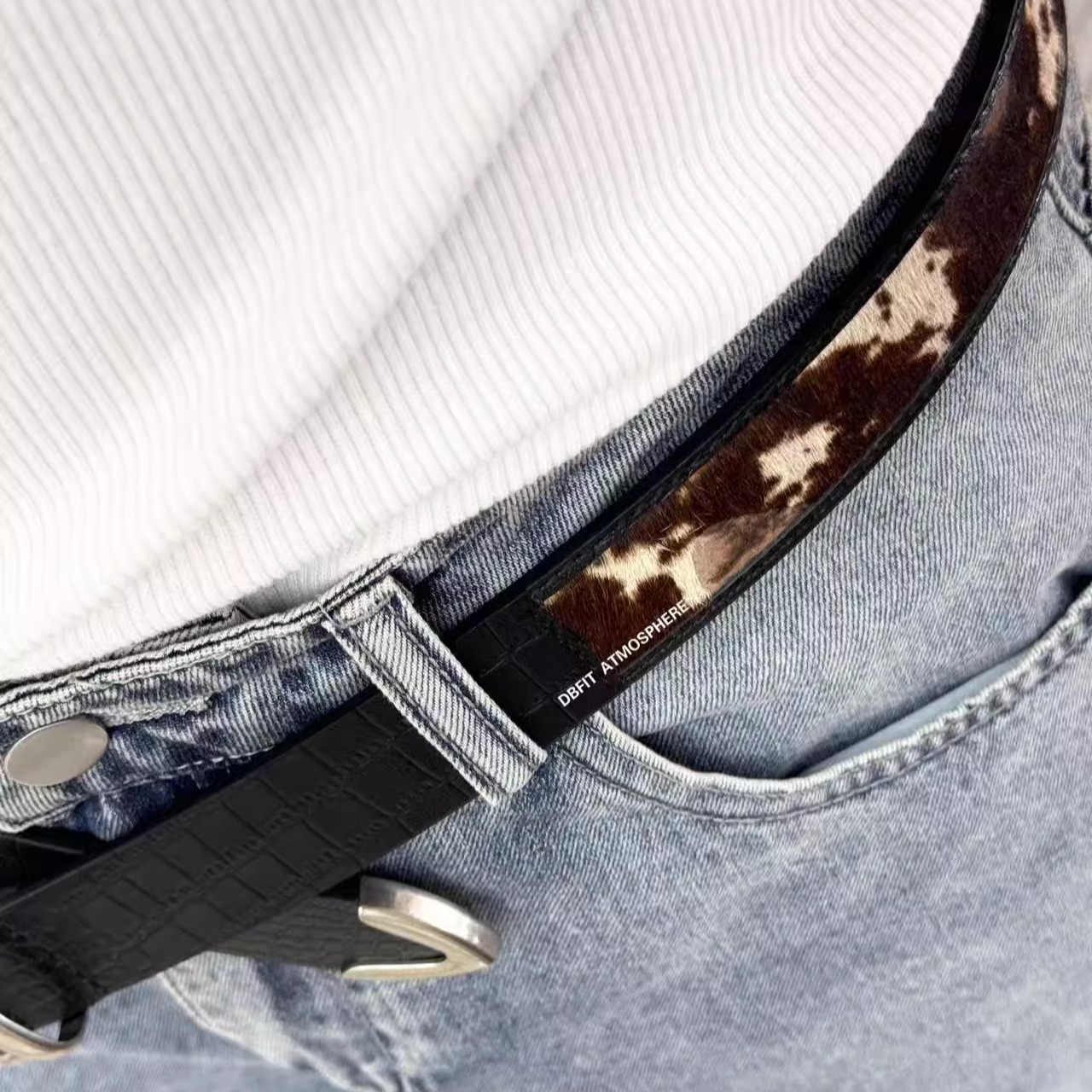 DBFIT复古纯手工鳄鱼皮纹路马毛拼接真皮复古战损皮带腰带男女款