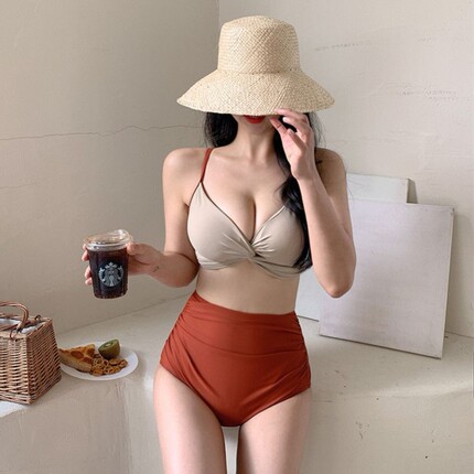 显胸大比基尼三点式性感暴露小胸聚拢大胸分体泳衣女款夏温泉泳装