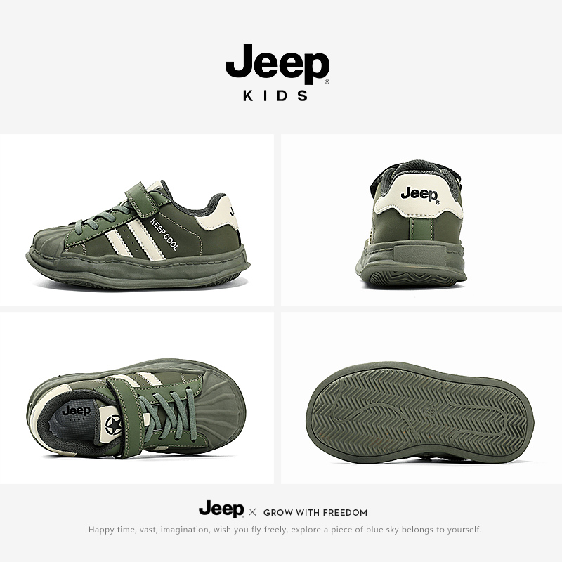 jeep童鞋儿童运动鞋皮面软底板鞋2025秋季新款跑步鞋女童男童鞋子
