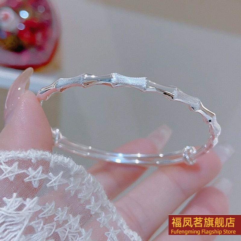 正生新款足银9999节节高升竹节纯银手镯女小众实心新款礼物手环