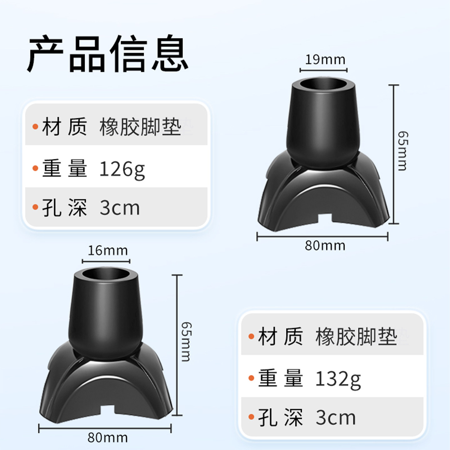 拐杖防滑脚垫拐棍橡胶头四脚套老人双手杖配件登山杖拐杖头脚垫