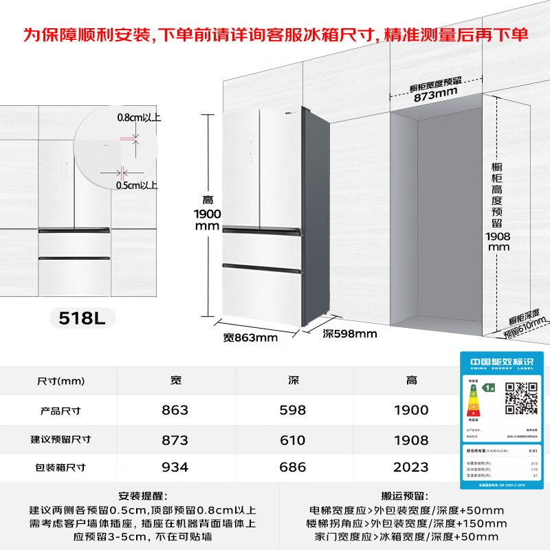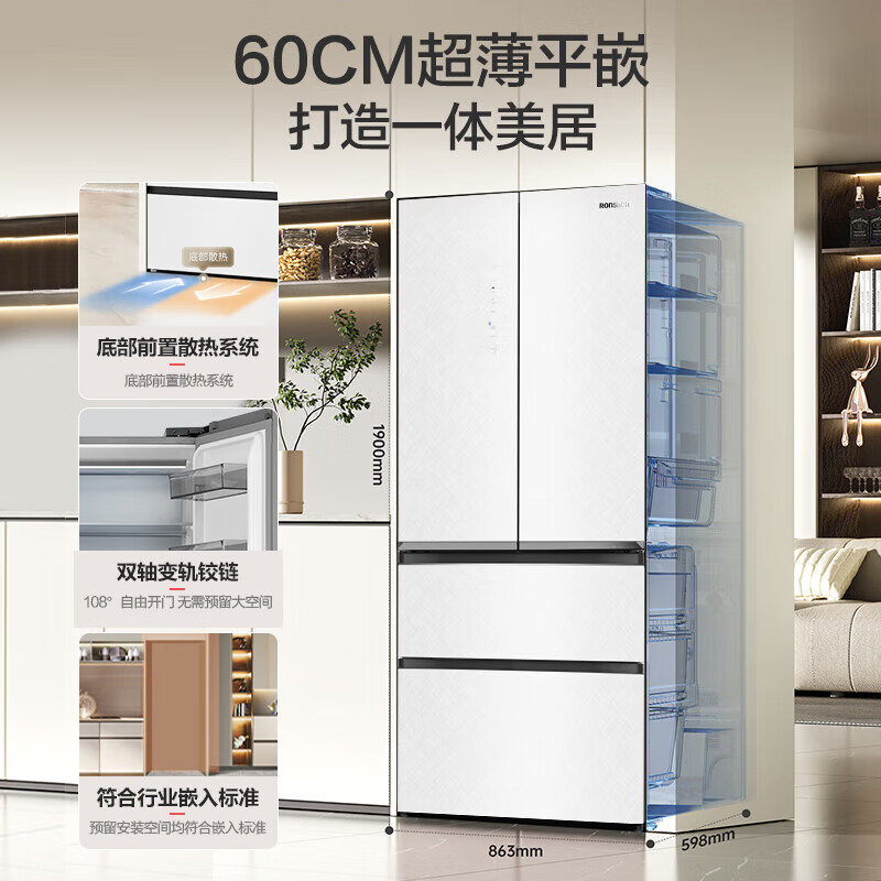 容声518WKM1MPGZA法式四门超薄零嵌双净IDP无霜冰箱门店同款