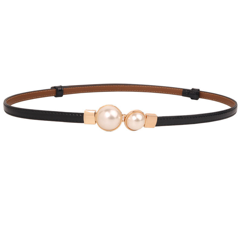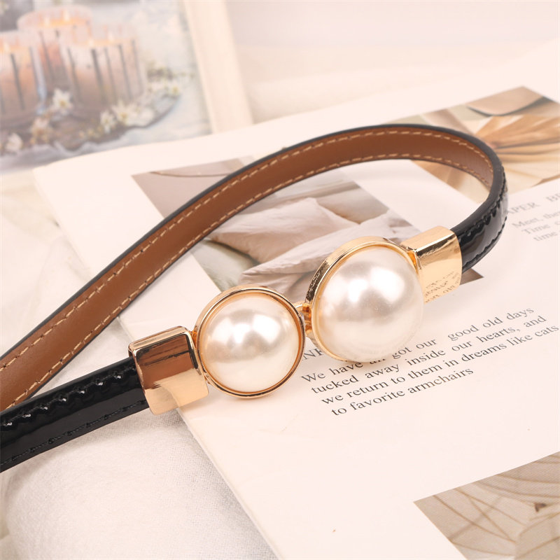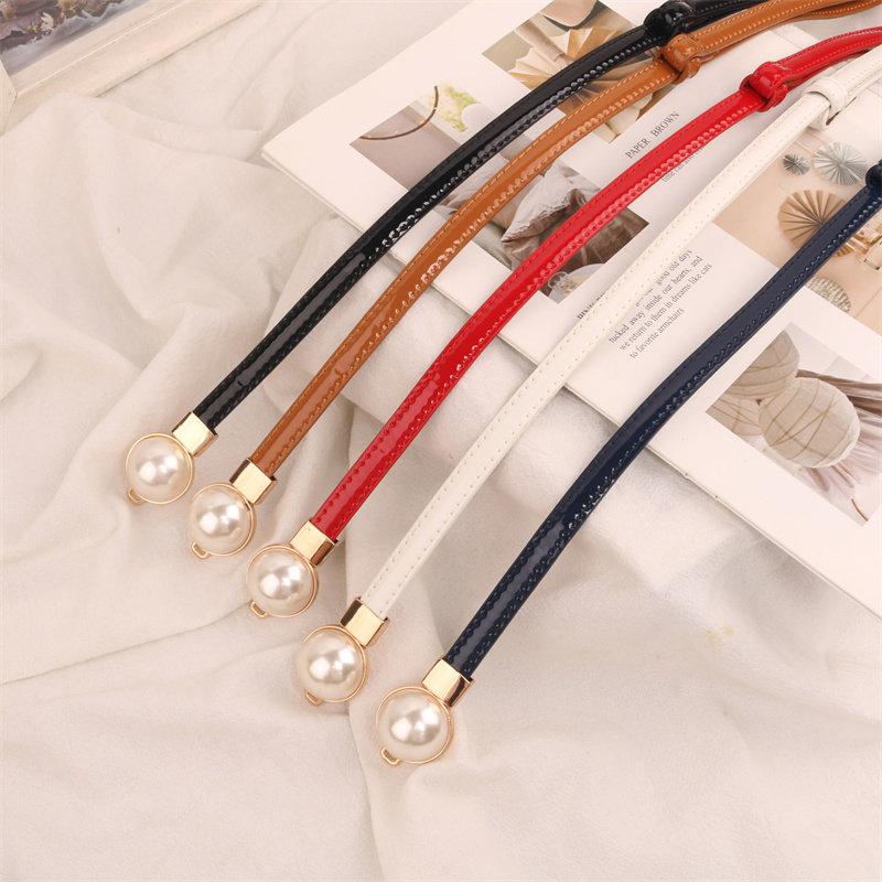对扣真皮细腰带女夏季2024配连衣裙子毛衣收腰漆皮装饰小皮带配饰