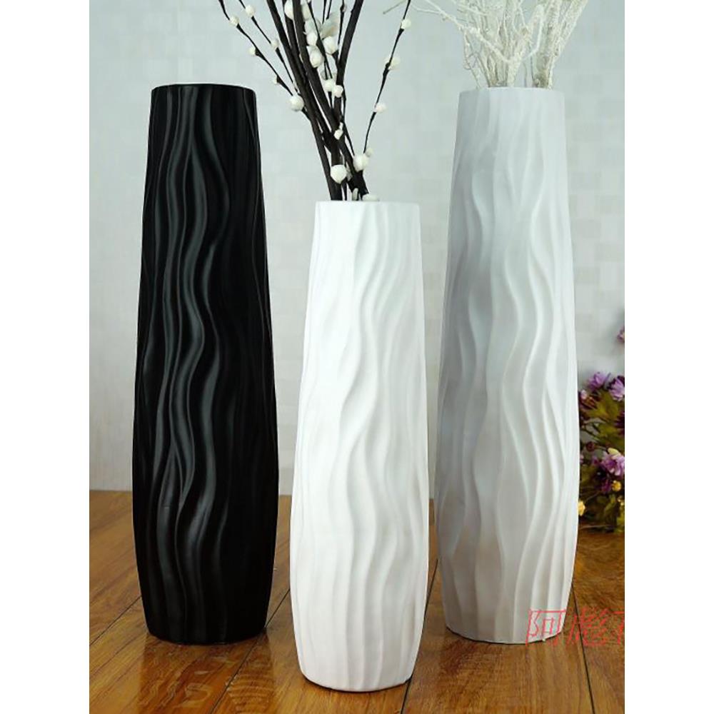 陶瓷落地白色黑色简约时尚欧式现代客厅摆件家用装饰品干花大花瓶