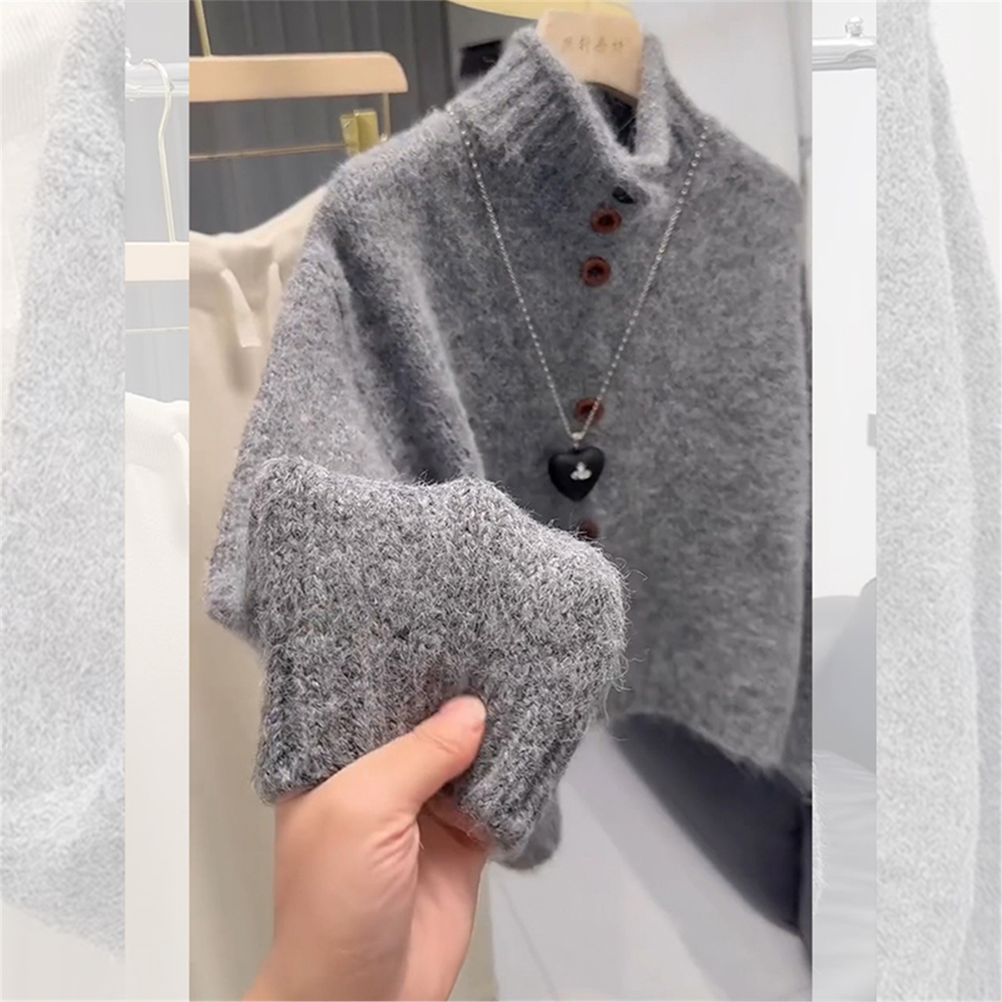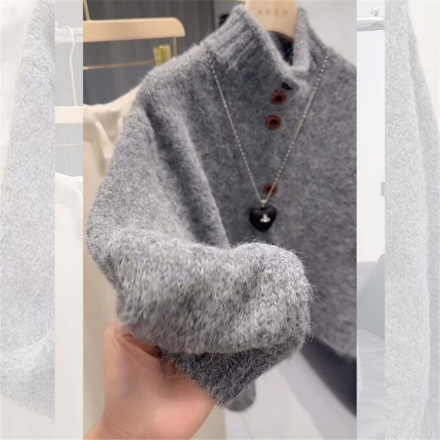 法式灰色高领浣熊绒开衫毛衣外套女2025秋冬季软糯厚款针织衫上衣