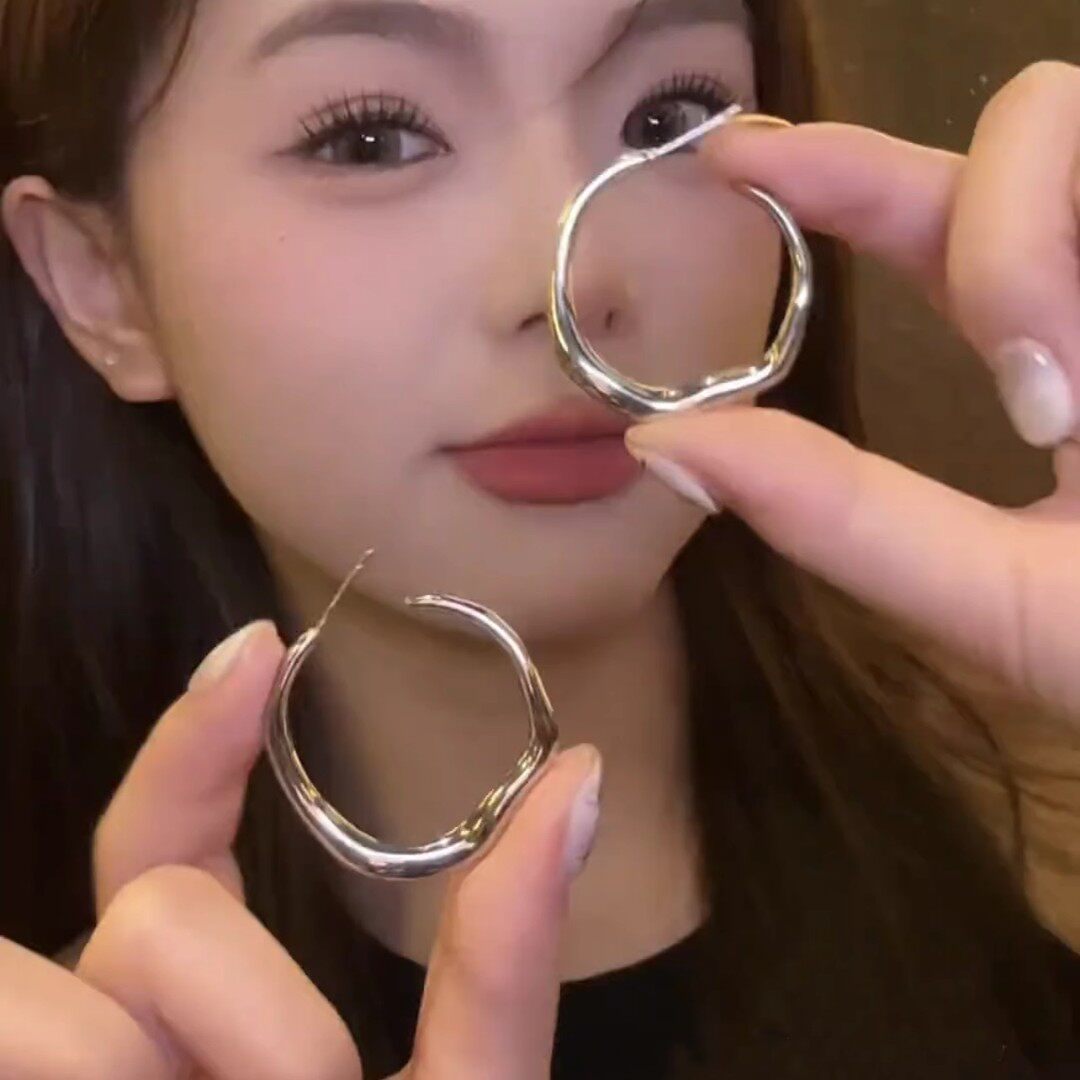 法式素圈耳环女2024新款爆款不规则设计感耳圈耳钉简约显脸小耳饰