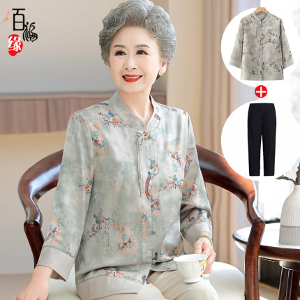 妈妈装洋气七分袖衬衫薄款老年人女装夏装老太太夏装奶奶衬衣新款