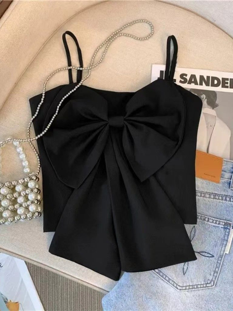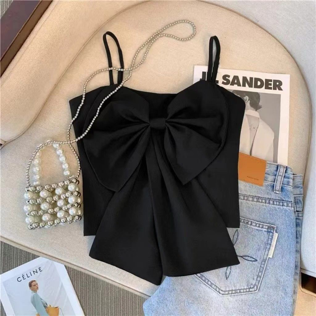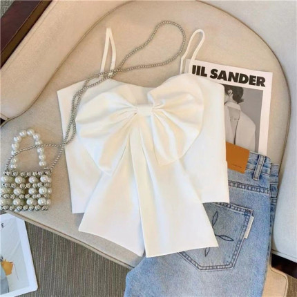女童大蝴蝶结背心夏季新品褶皱韩版吊带时尚百搭网红上衣小香风潮