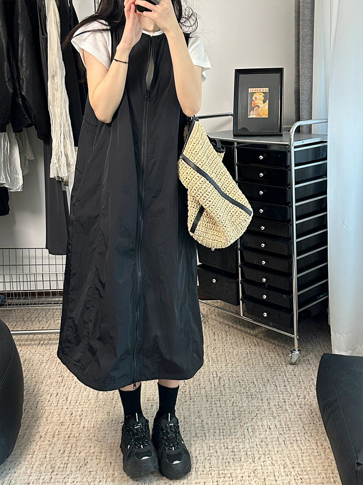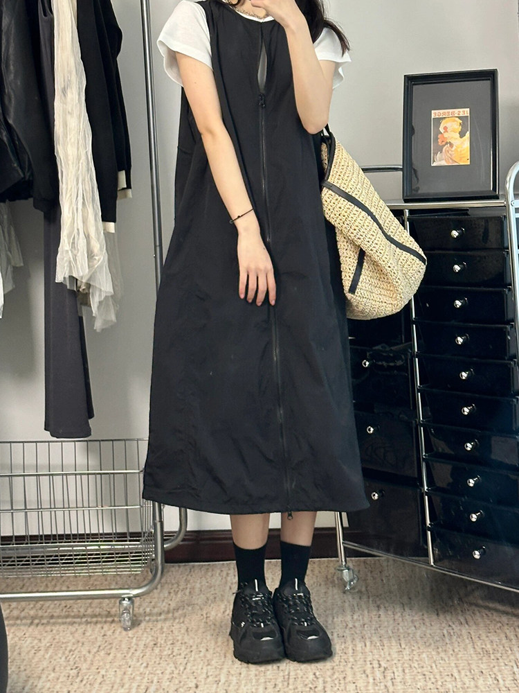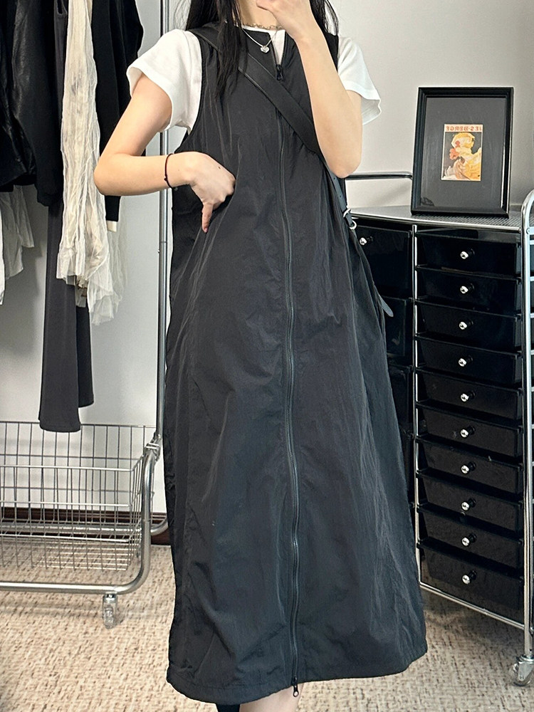 大码机能风拉链背心裙女夏胖mm显瘦工装背带裙小个子设计感连衣裙