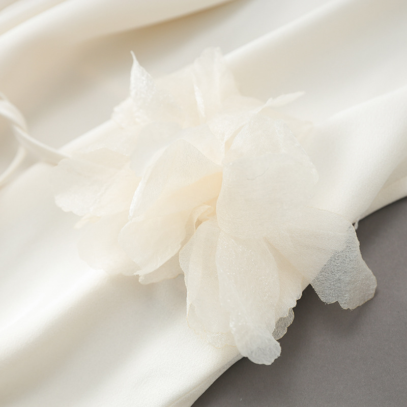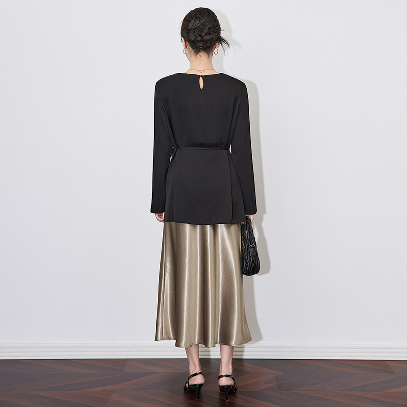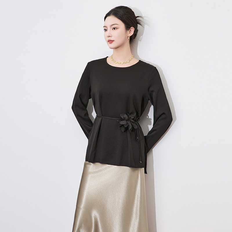 重工高级感法式感通勤圆领立体花系带上衣醋酸长袖女春装新款