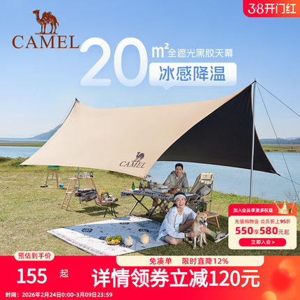 骆驼天幕户外大号黑胶露营帐篷野营野餐遮阳棚防雨防晒全套装备