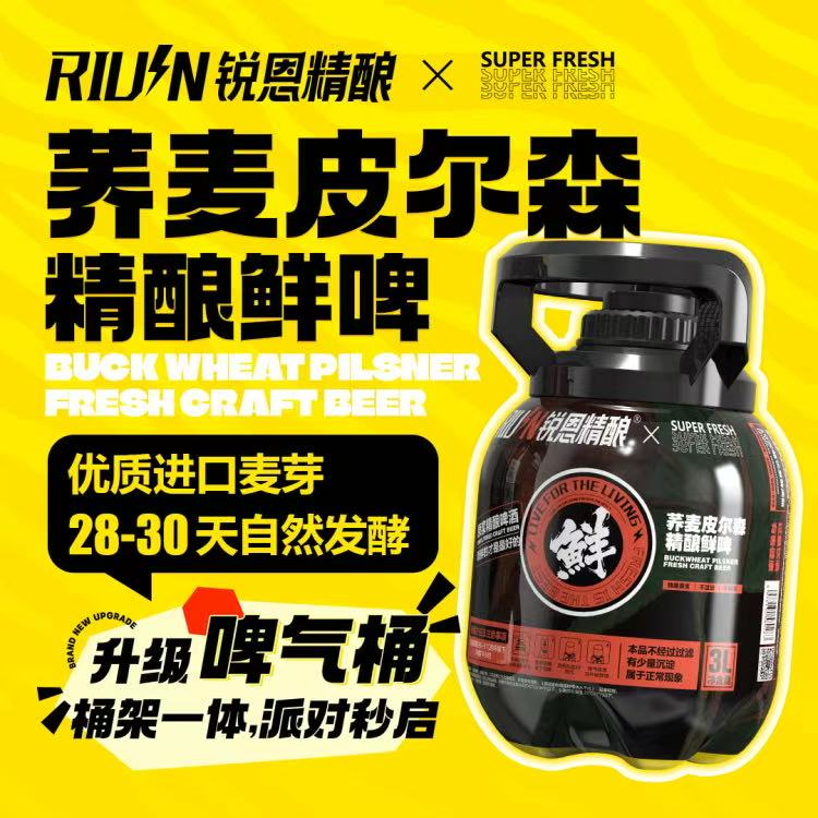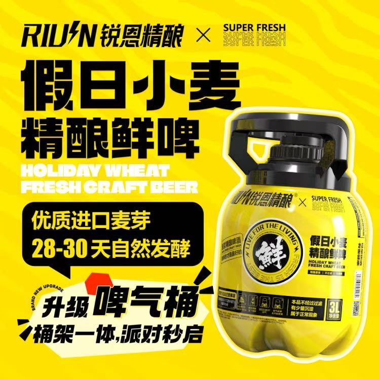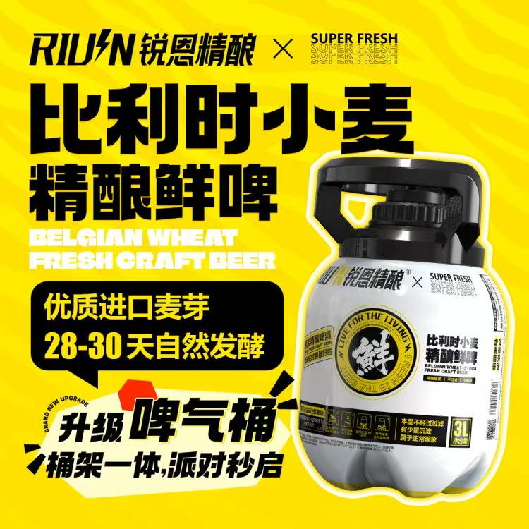 锐恩精酿专卖店锐恩3L脾气桶吨吨桶精酿鲜啤比利时小麦百香果啤酒