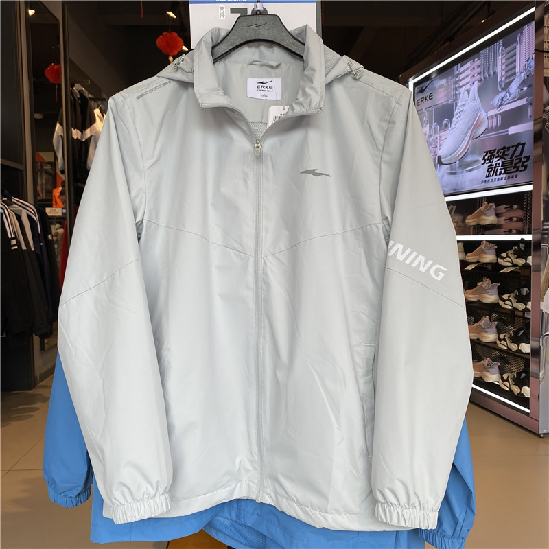 鸿星尔克男装春季新款防风防水运动外套时尚带帽风衣11222180354