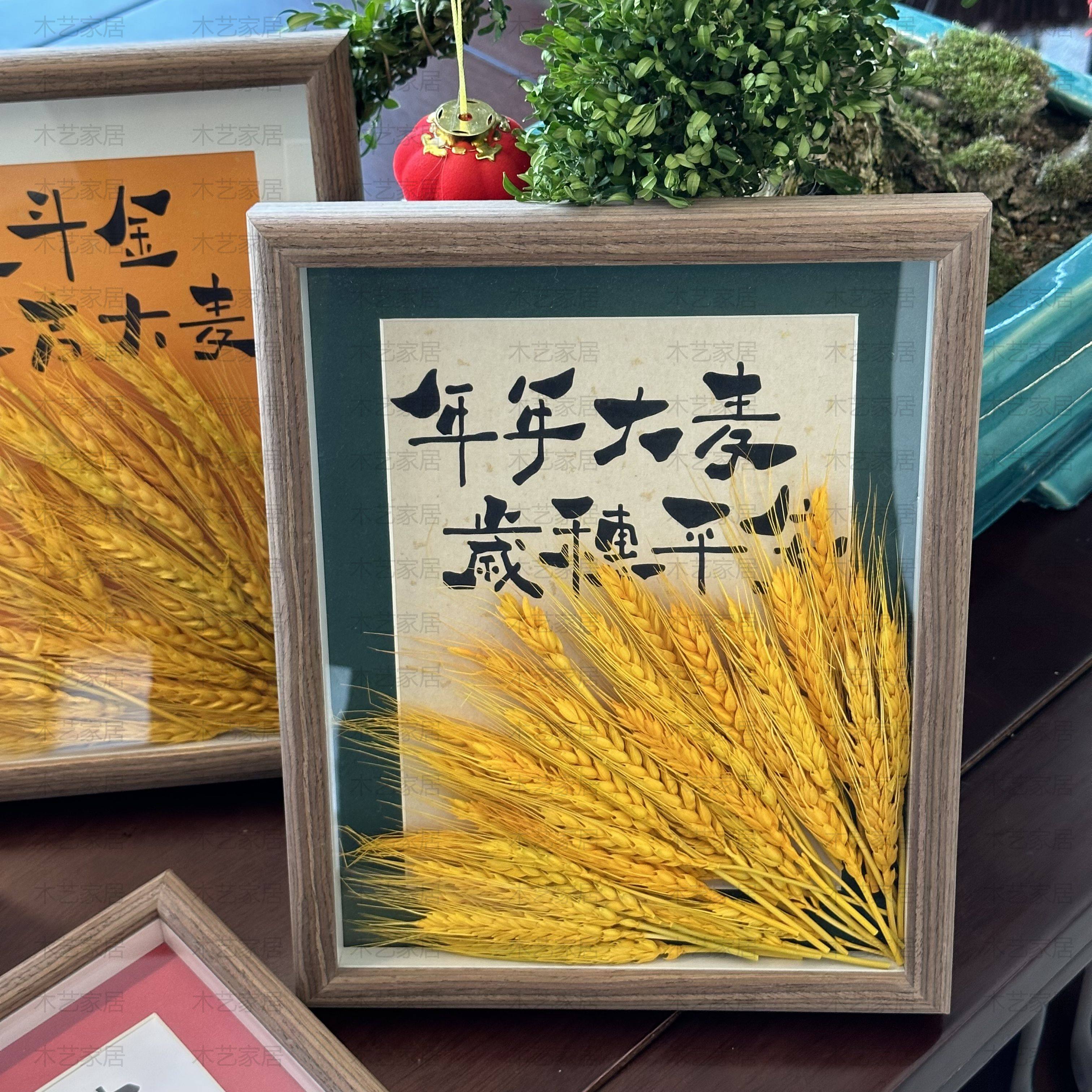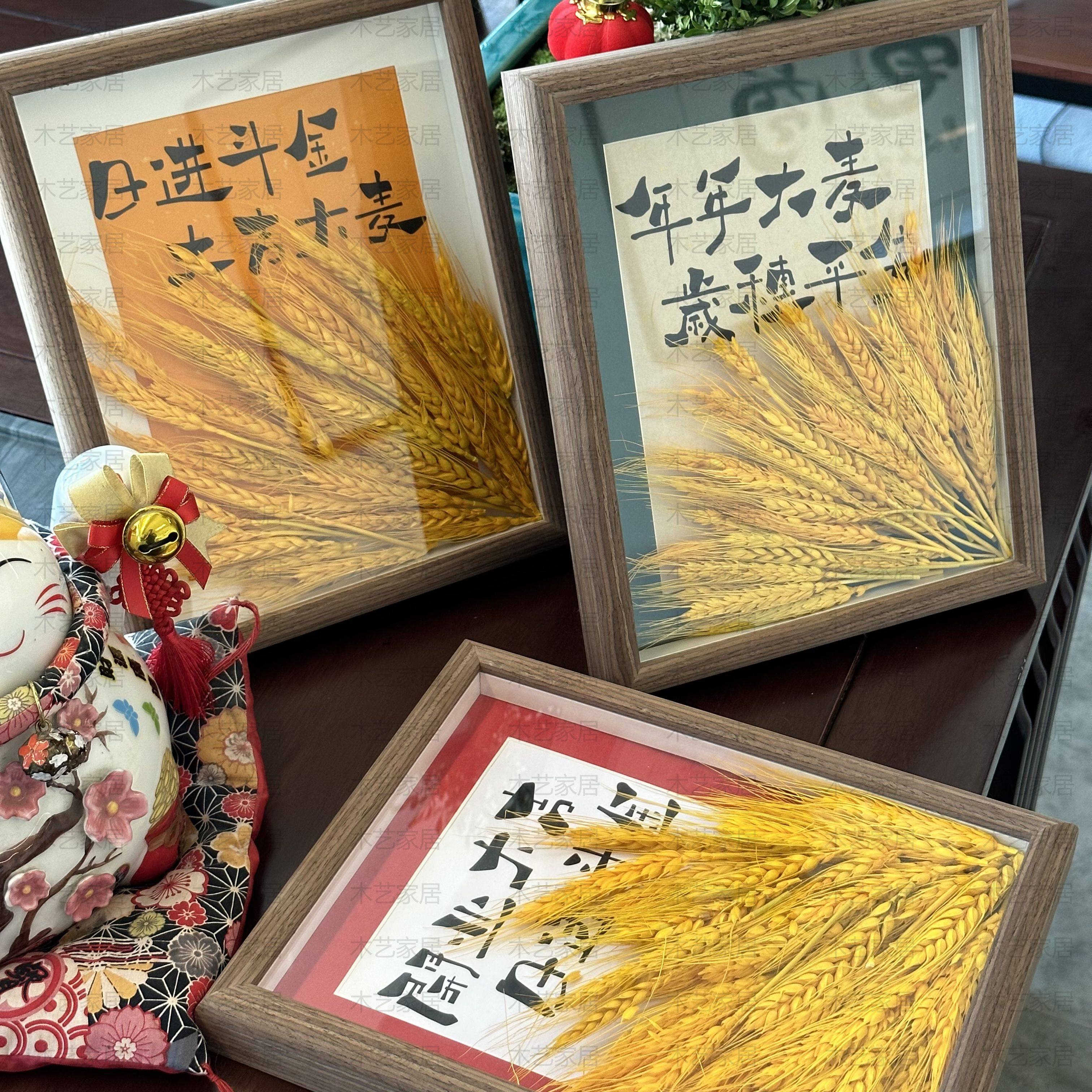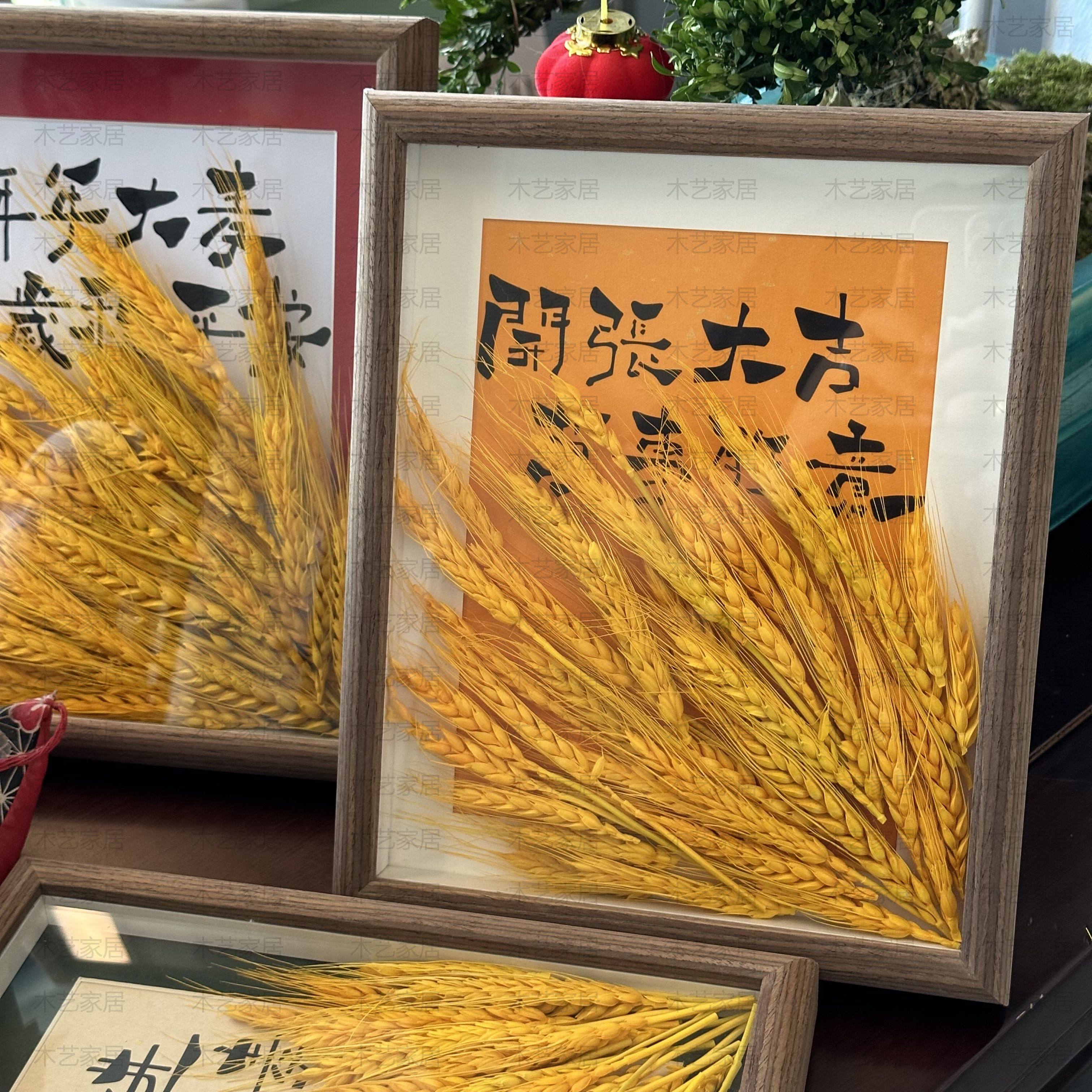 开业大吉日进斗金 diy黄金麦穗实木相框摆台开业送礼装饰画挂墙