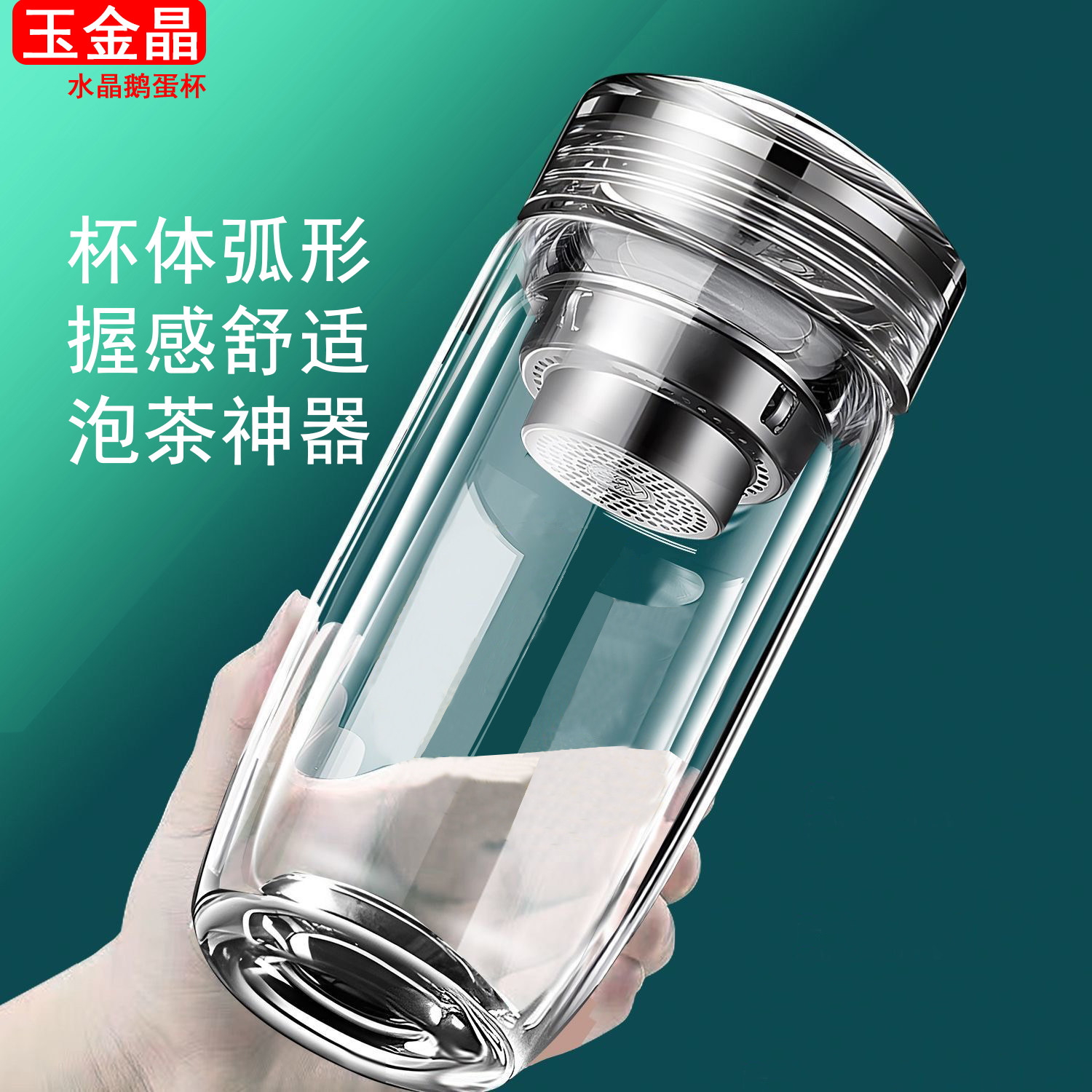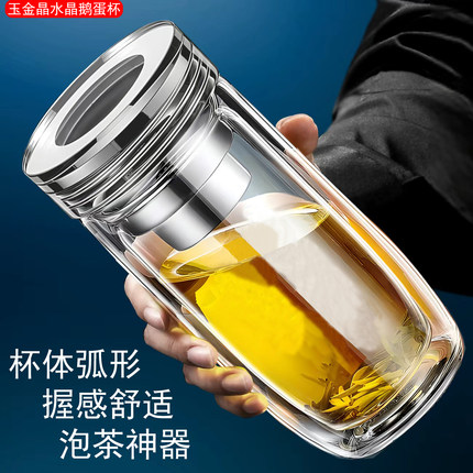 水晶盖玻璃鹅蛋杯大容量男士商务男女士泡茶便携隔热泡茶水分离杯