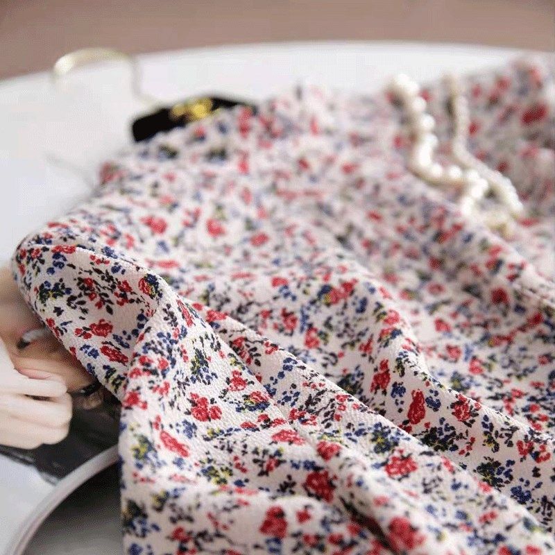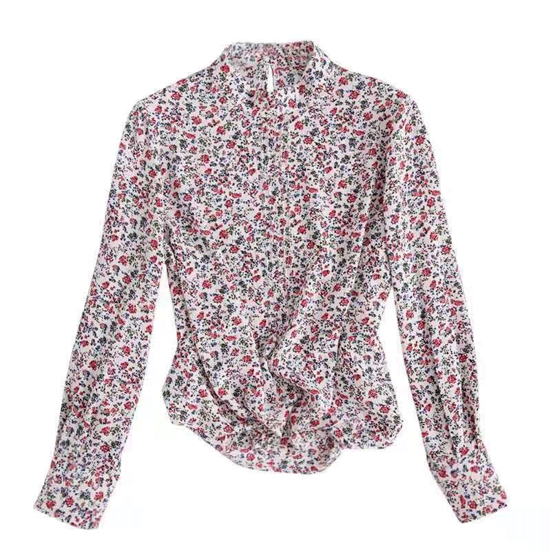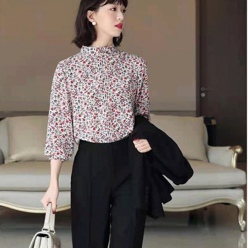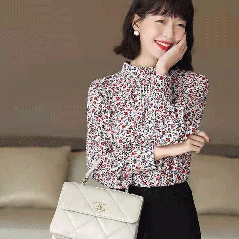 优雅女人味又靓又美套头圆领长袖雪纺小碎花衬衫女春季