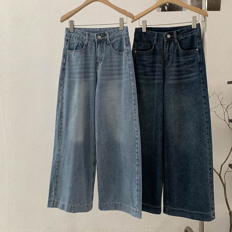 十三行欧货 定制2025秋冬新款韩版高腰简约显瘦休闲百搭牛仔长裤