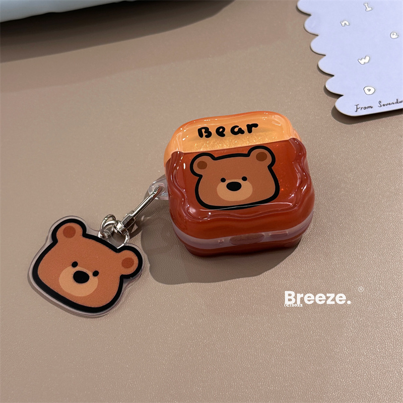 ins风卡通可爱小熊带挂饰适用AirPods Pro保护套苹果2代3代4代蓝牙耳机壳全包防摔硅胶软壳airpods4
