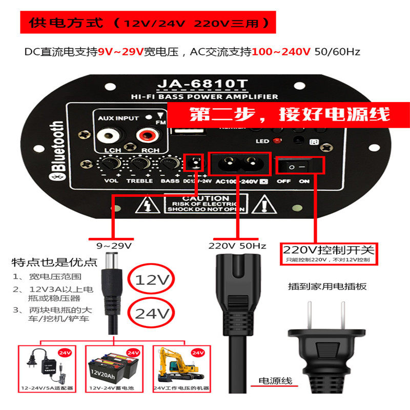 大功率功放板内置蓝牙低音炮音响音箱主板220V12V24V家庭车载适用
