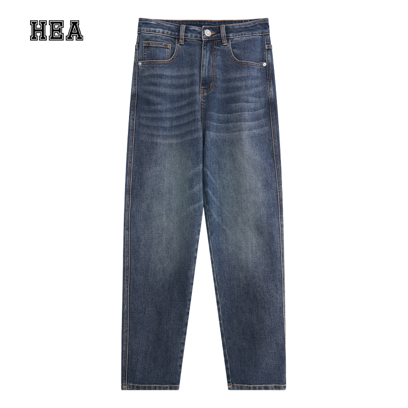 HEA复古休闲水洗做旧牛仔裤男女2025新款宽松潮流百搭设计感长裤