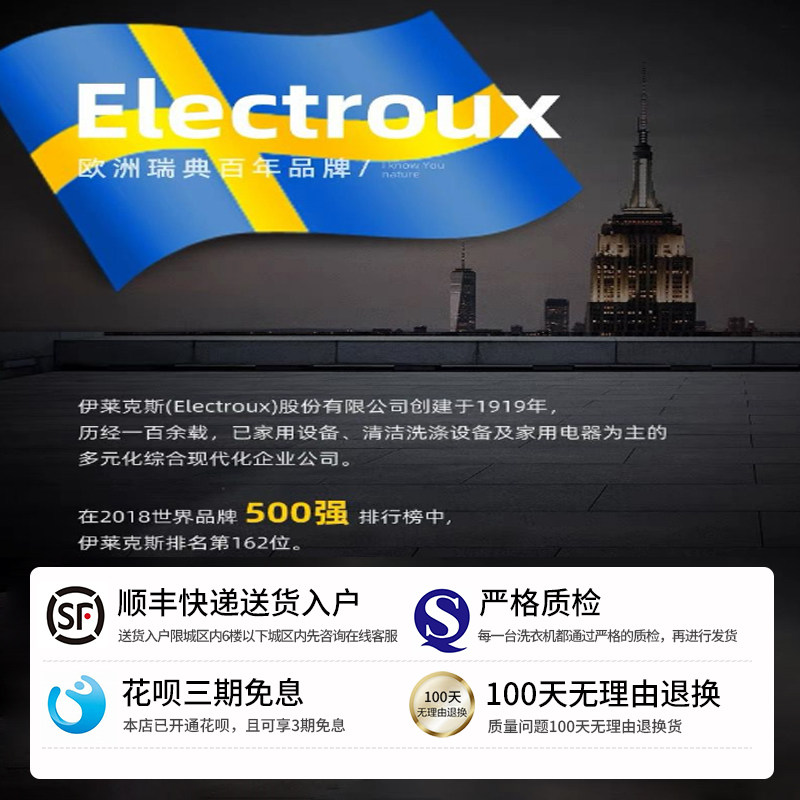 伊莱克斯PHILCO全自动洗衣机12/15KG家用租房波轮智能烘干大容量