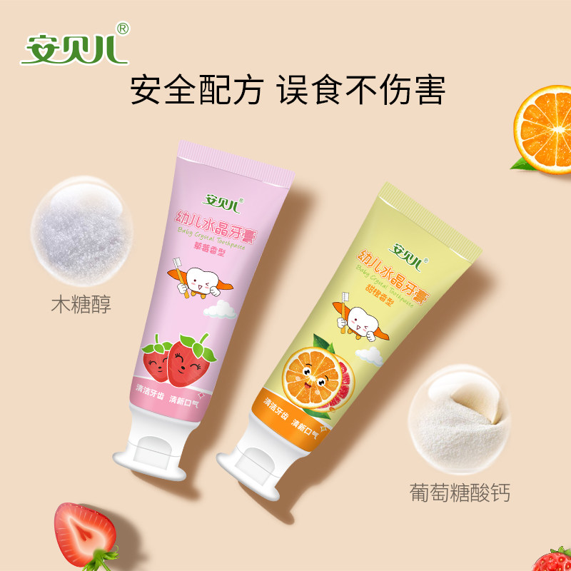 安贝儿幼儿水晶牙膏宝宝儿童3-6-12岁小孩以上无氟牙刷