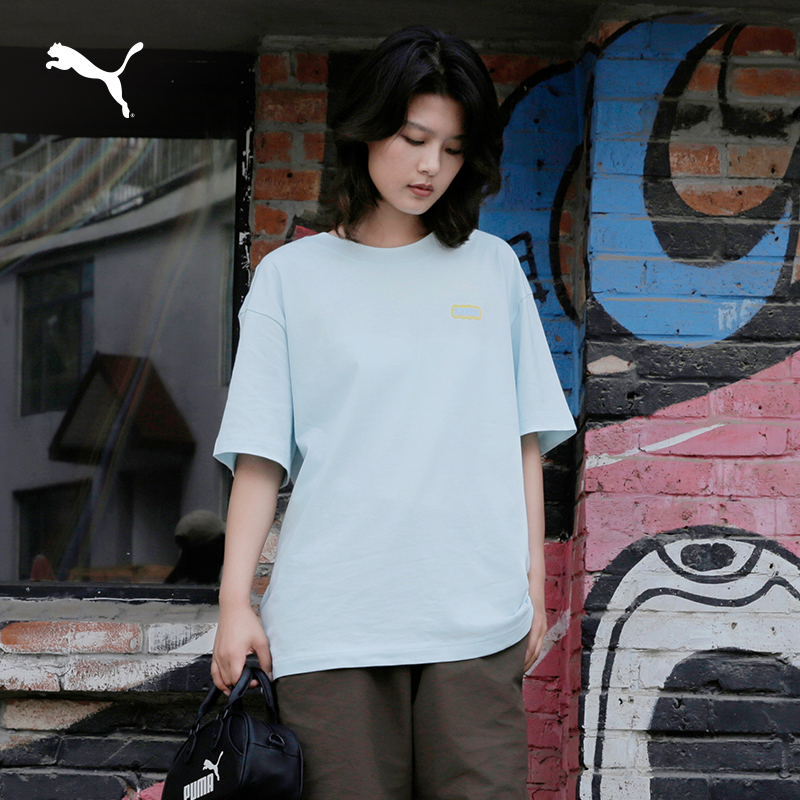 纯棉宽松蓝色休闲短袖T恤男PUMA彪马新款夏季圆领运动上衣 632982