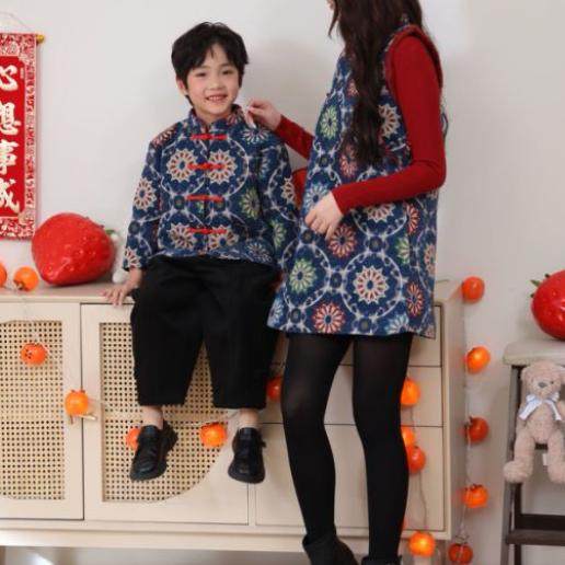 亲子装旗袍中国风冬季全家装新过年拜年服儿女童男童唐装母女装