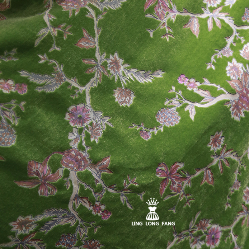 真丝丝绒复古时装布料烧花烂花春夏连衣裙旗袍新中式国风服装面料