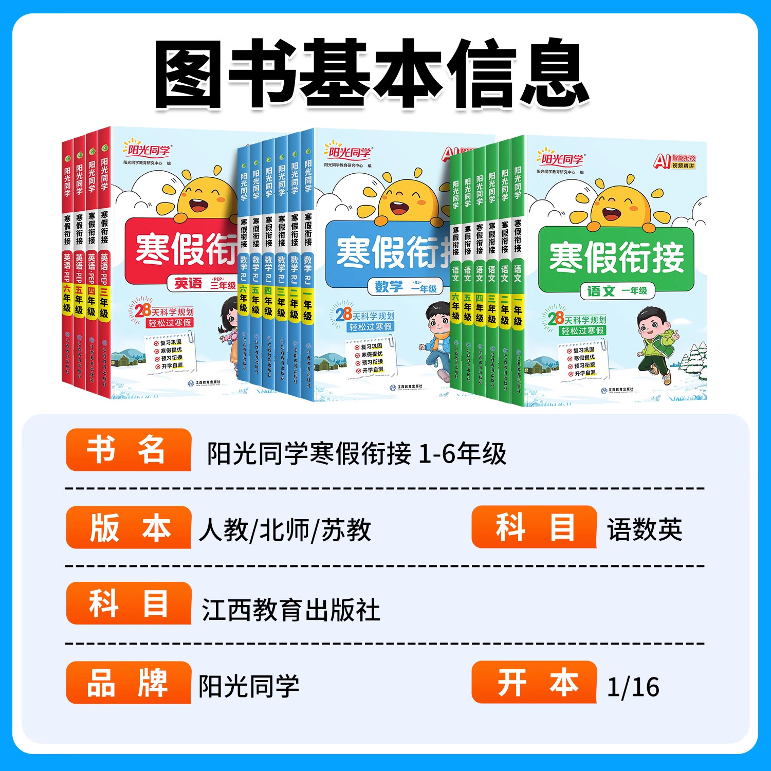 2026新版阳光同学寒假衔接一年级二年级三四五六年级上册下册寒假作业语文数学英语全套同步练字帖人教版阅读理解口算题专项训练书