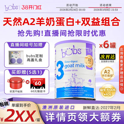 【咨询客服加赠】澳洲bubs羊奶粉dha官方A2宝宝益生菌3段800g*6罐