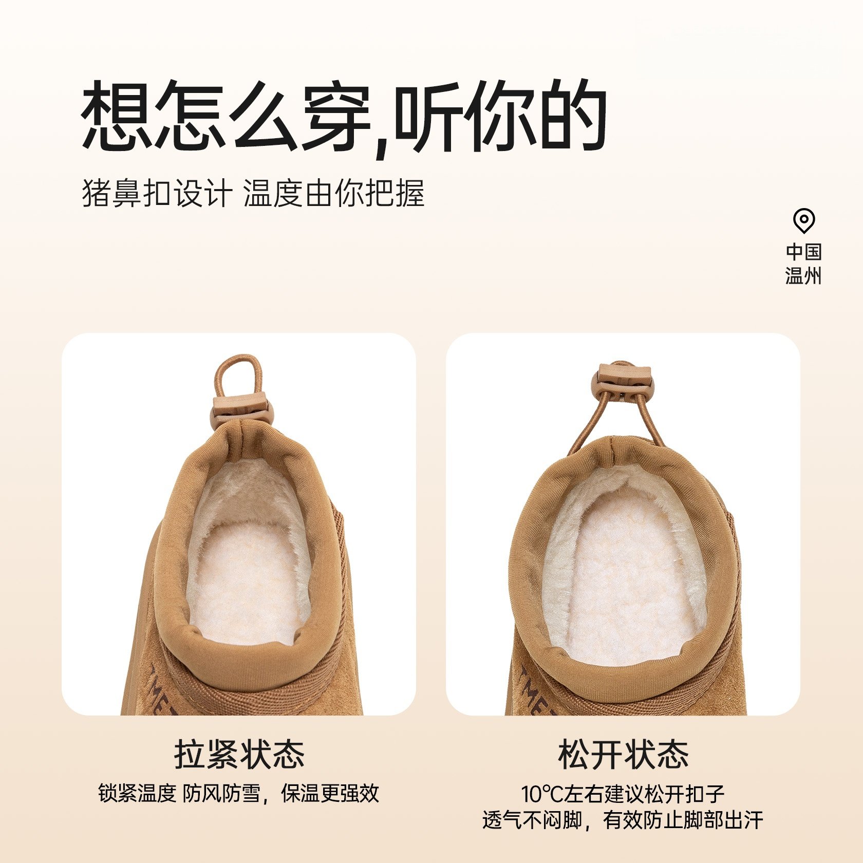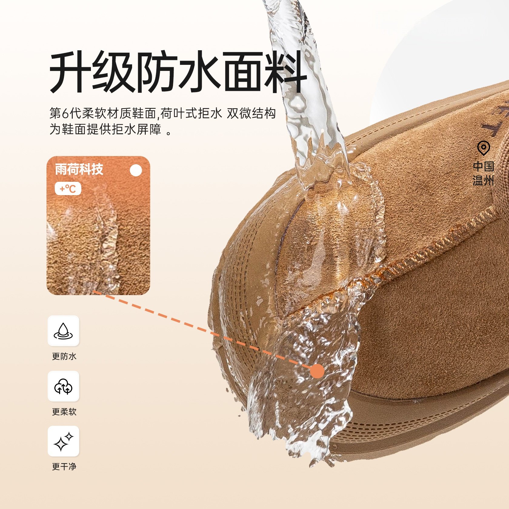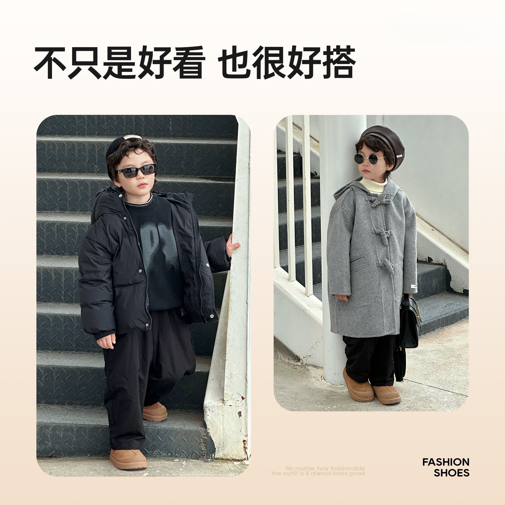 ABC真皮女童靴童鞋冬季加厚保暖防水儿童雪地靴羊毛男童鞋子棉鞋