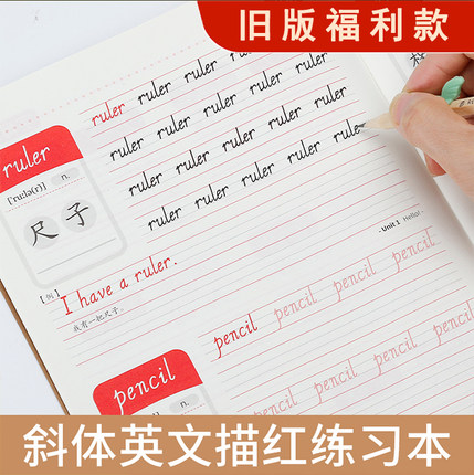 【旧版清仓价】英语描红字帖三年级上册下册练字本描红pep人教版小学生三四年级意大利斜体英文26个字母练字帖手写体单词音频练习