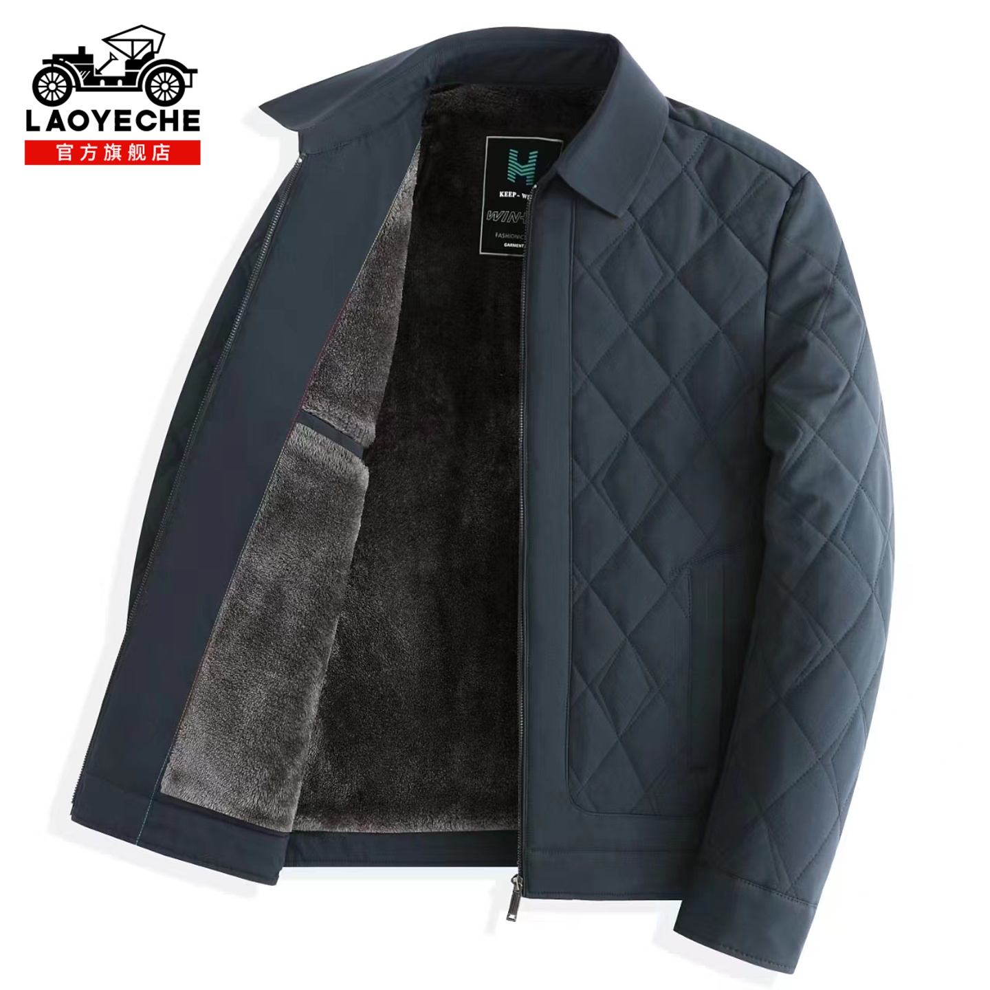 老爷车加绒夹克男士2025年秋冬季新款中年爸爸加厚保暖休闲外套男
