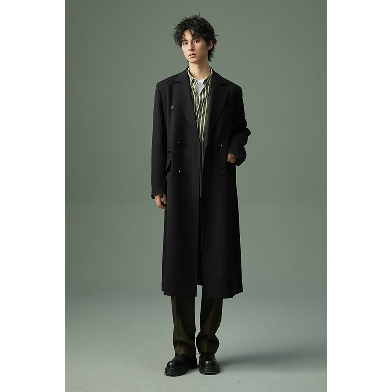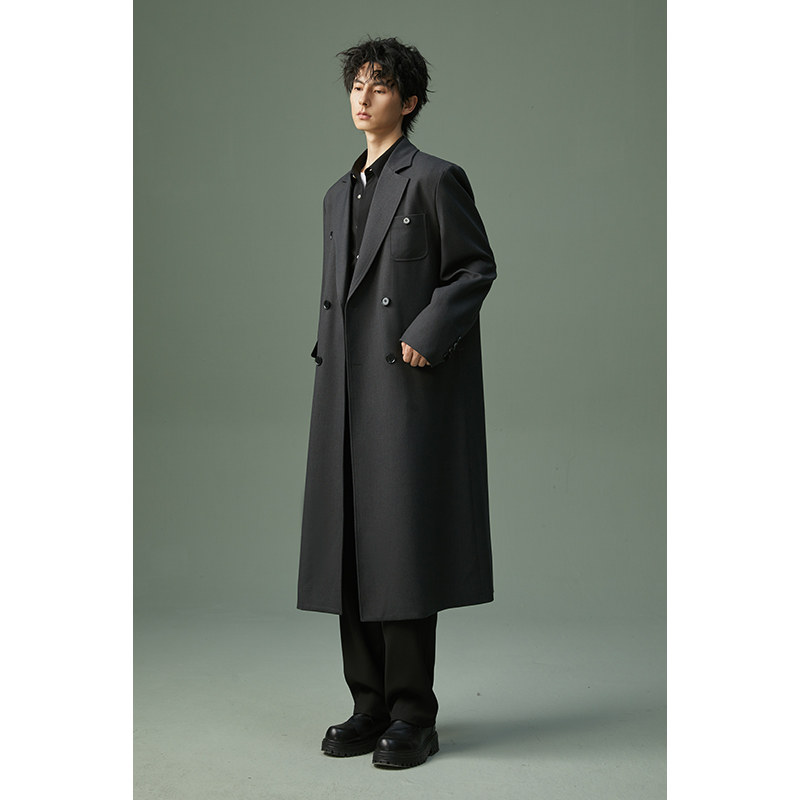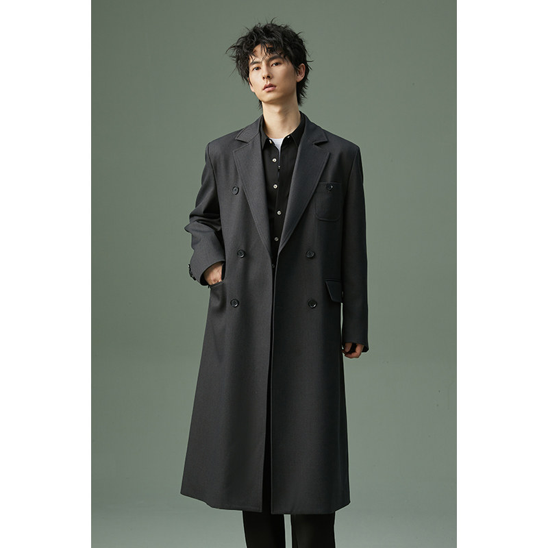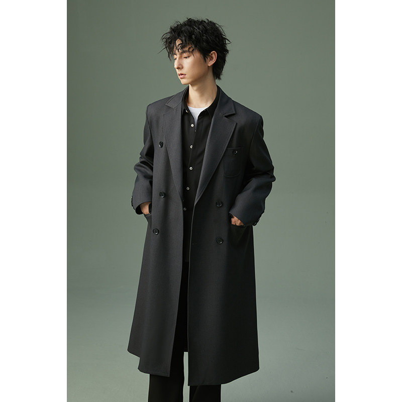 w2x2024新款双排扣春秋季风衣男中长款过膝高级感德式翻领外套男