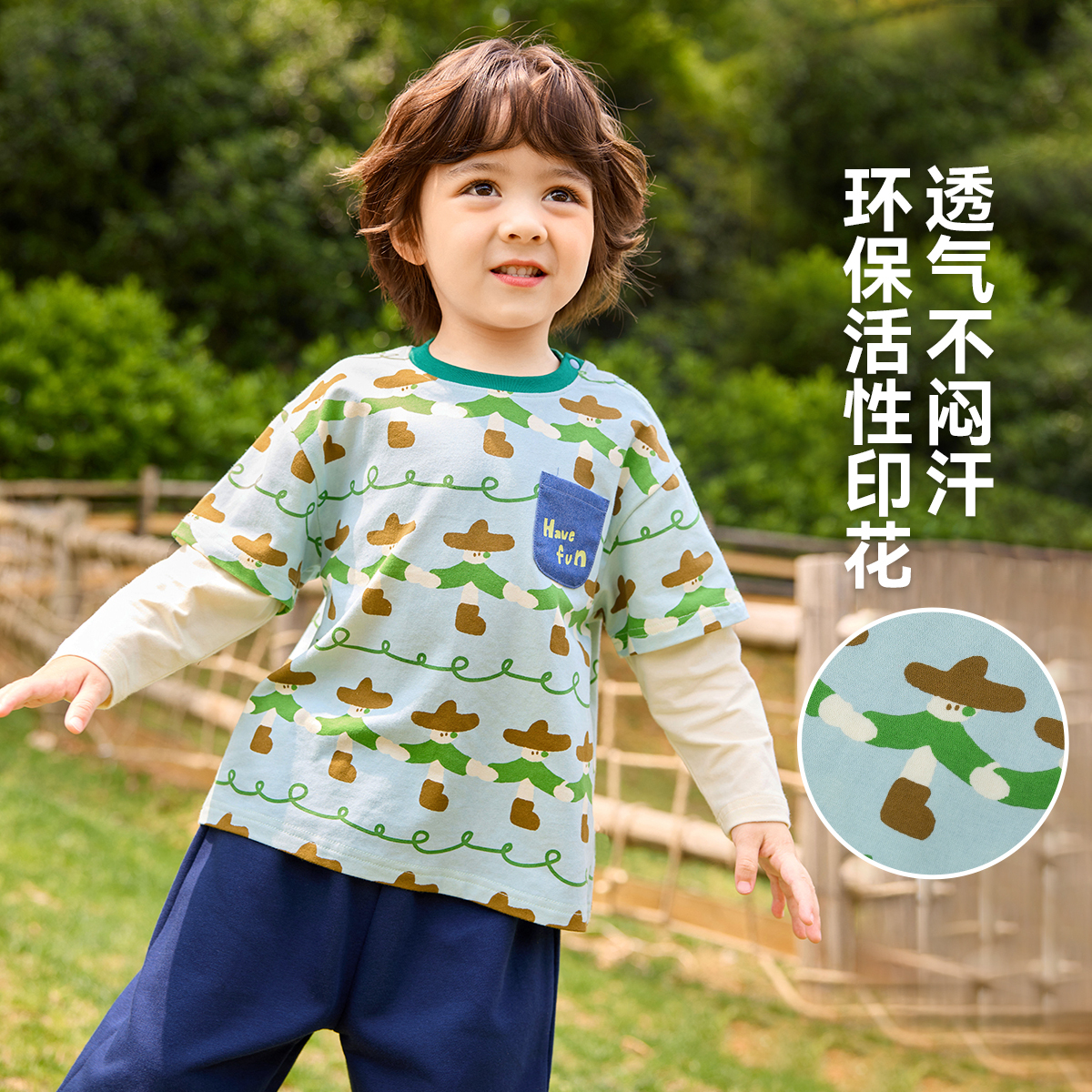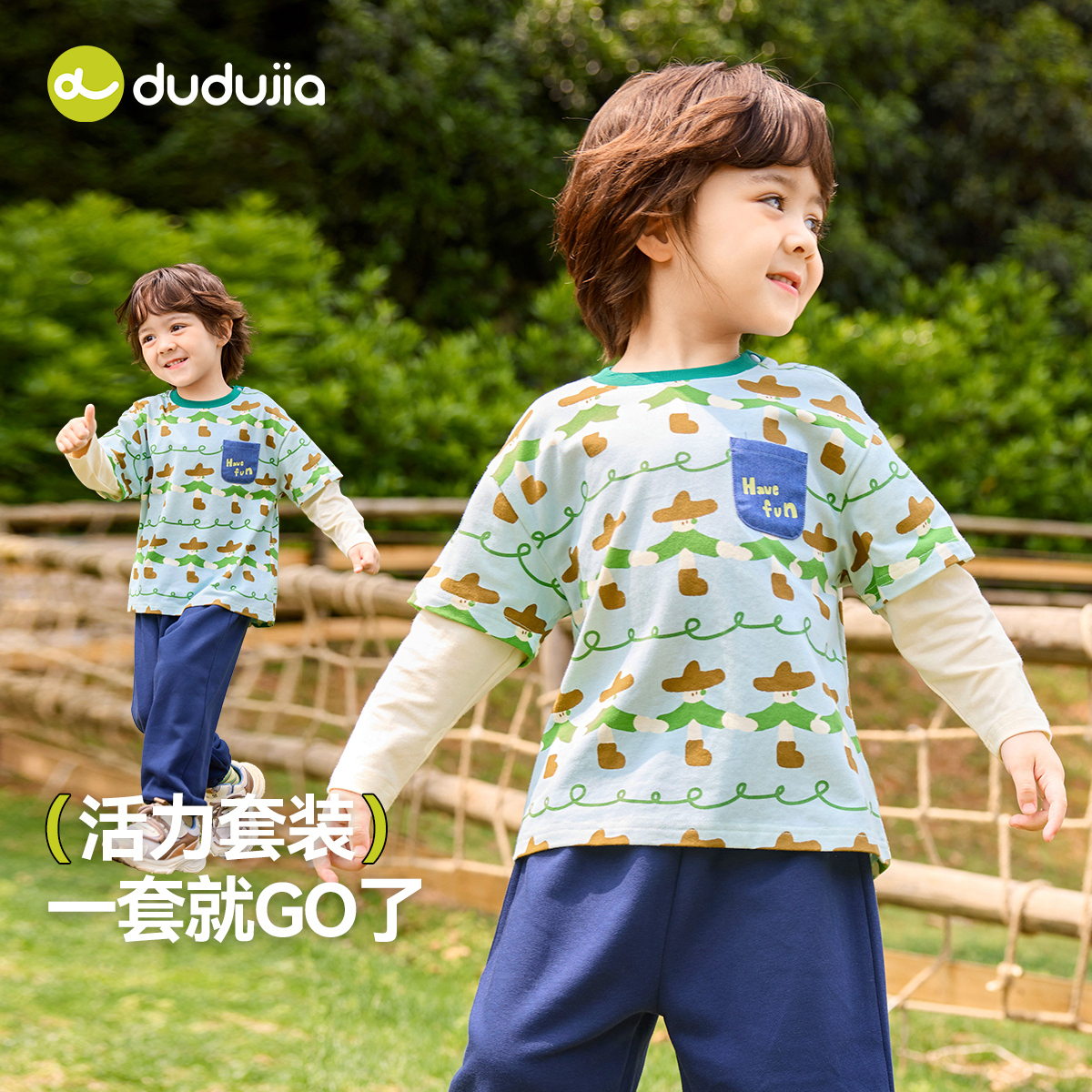 嘟嘟家儿童套装男童假两件上衣女宝休闲长裤婴幼儿衣服秋季新款潮