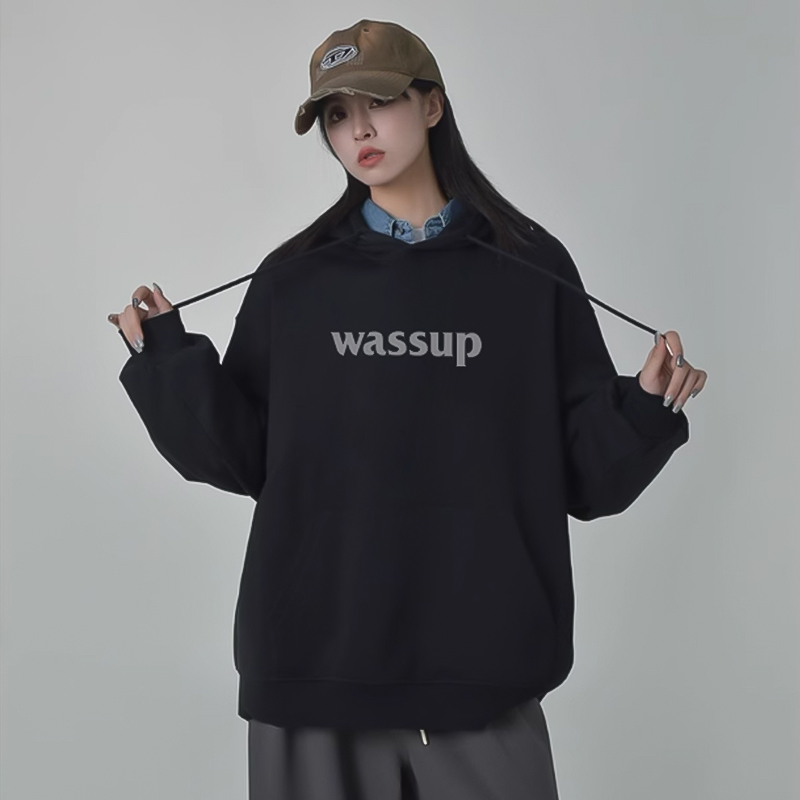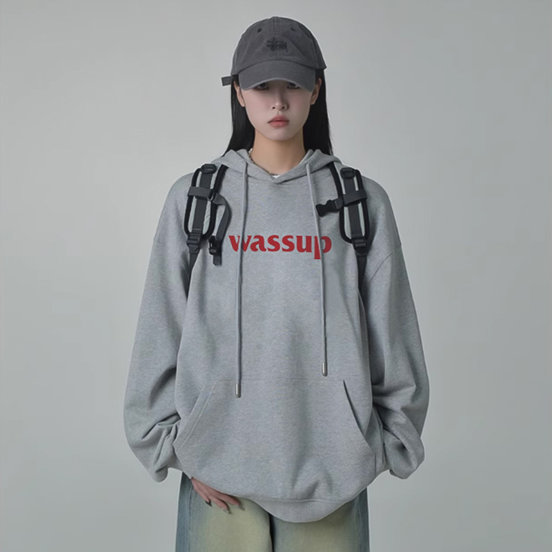 WASSUP国潮牌字母LOGO印花卫衣女连帽秋冬2025新款百搭情侣装上衣