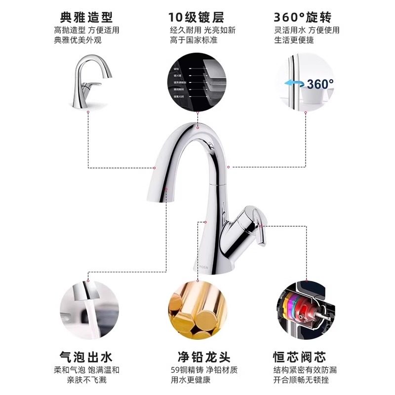 摩恩洗脸盆水龙头冷热两用卫生间面盆洗手池台洗漱浴室柜厕所家用