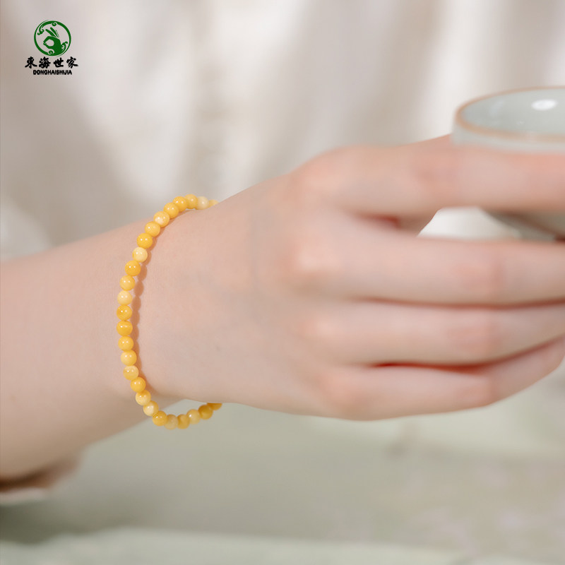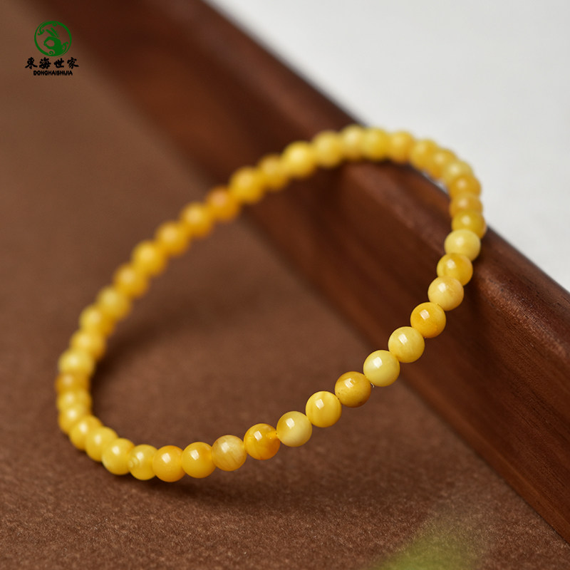 蜜蜡手串东海水晶玛瑙翡翠玉石散珠子琥珀文玩佛珠多圈老花蜡手链