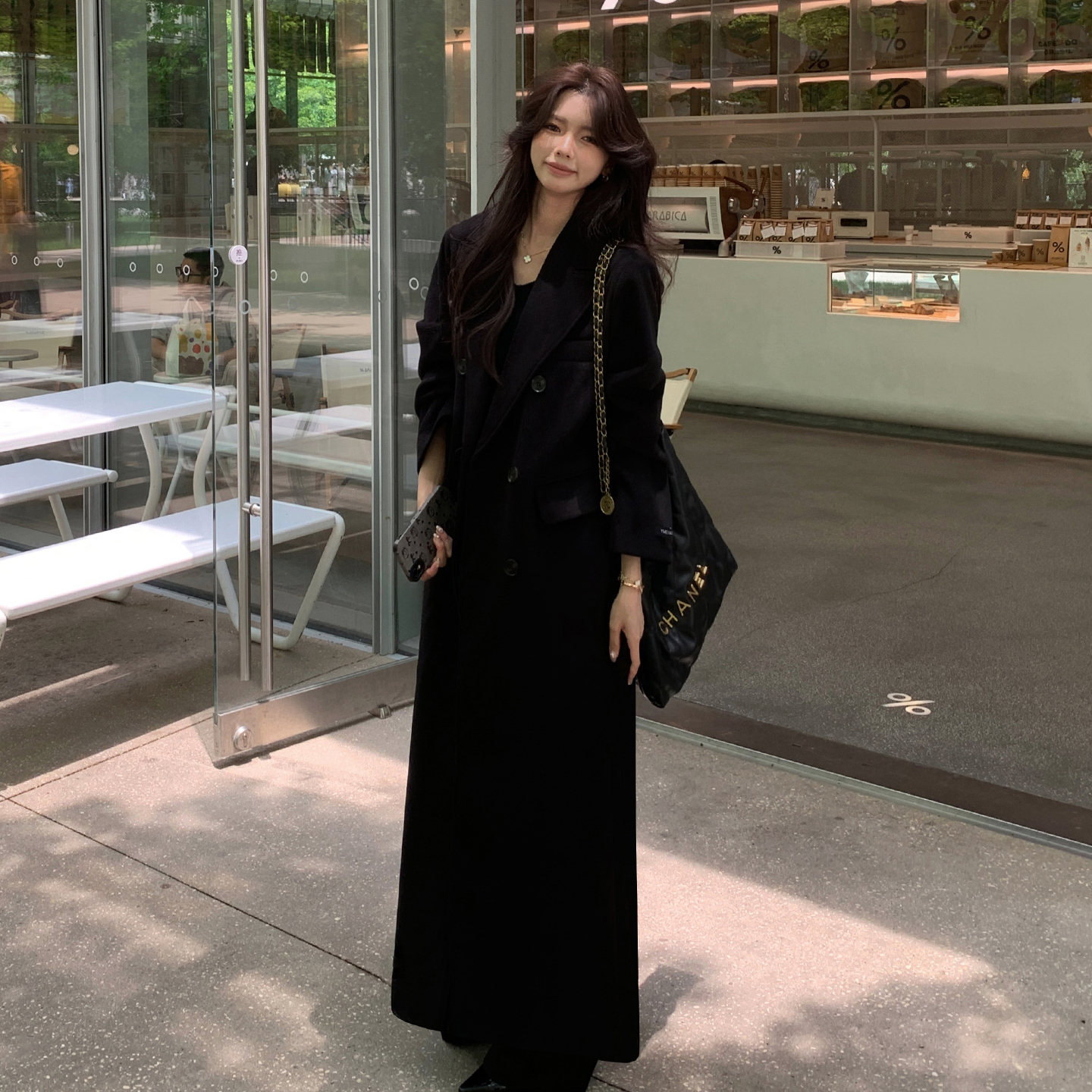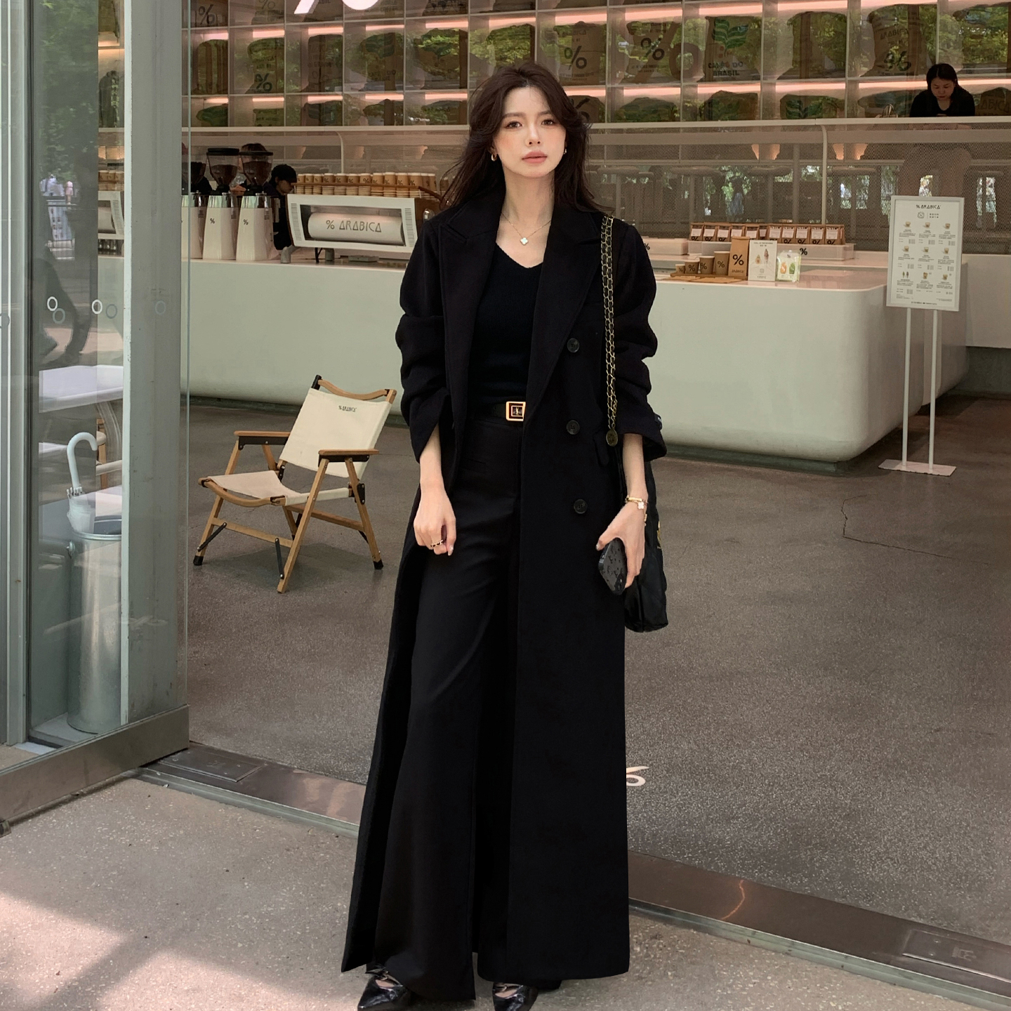 毛呢外套女黑色高级感超长款过膝高个子加厚2025新款秋冬呢子大衣