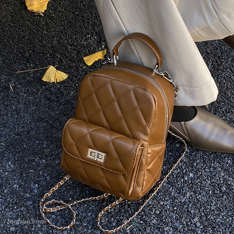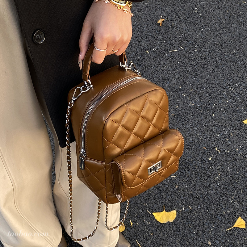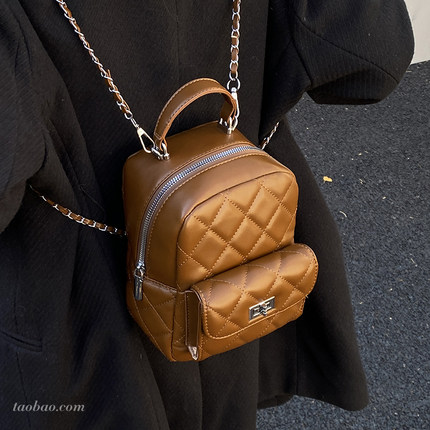 菱格绣线女双肩包2025新款复古百搭链条后背包精致迷你超火小书包