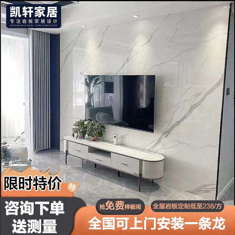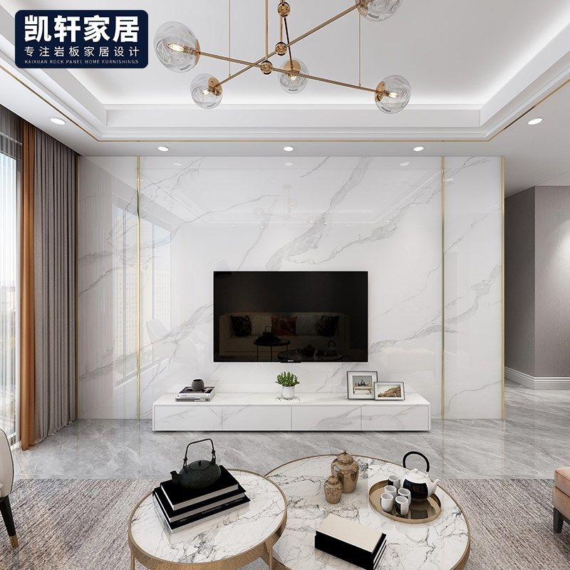 定制岩板电视背景墙2024新款大理石纹客厅沙发影视墙装饰瓷砖大板