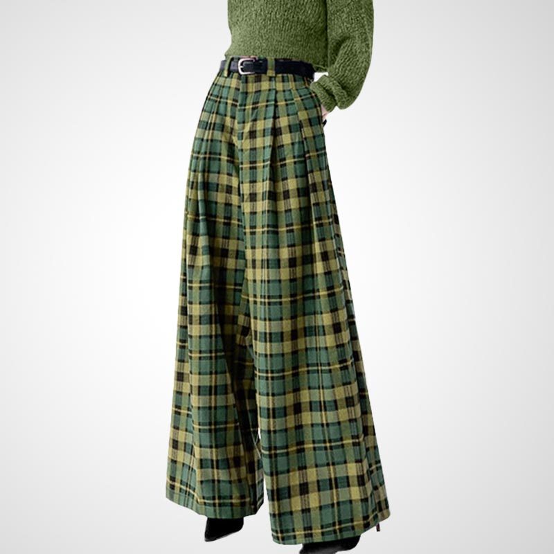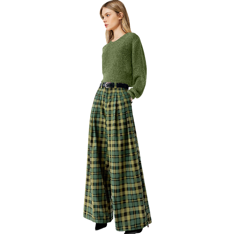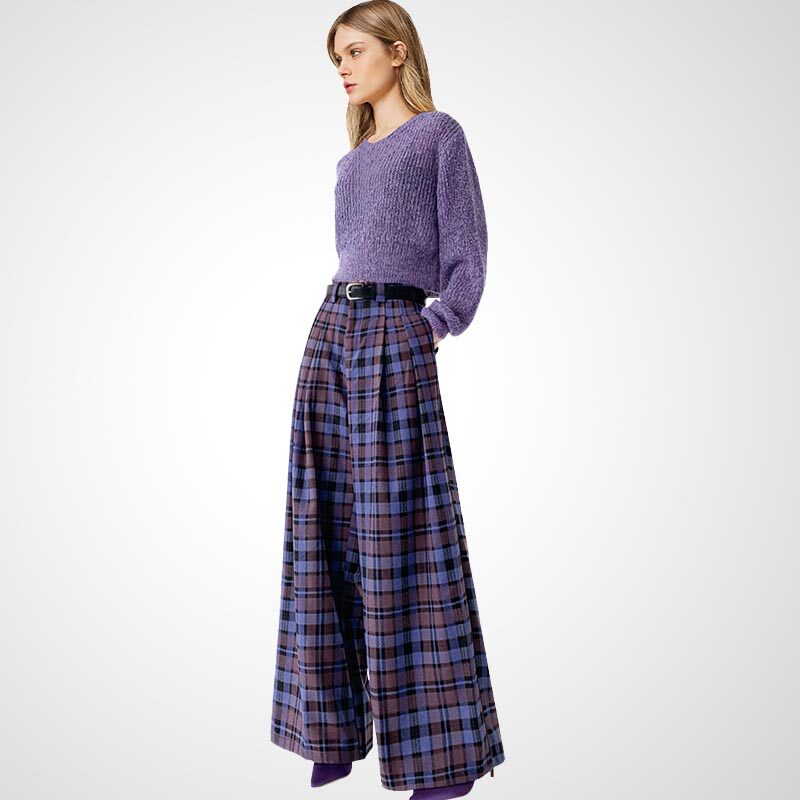 港风复古时髦高腰显瘦裤子女2025年秋冬新款毛衣格子阔腿裤两件装