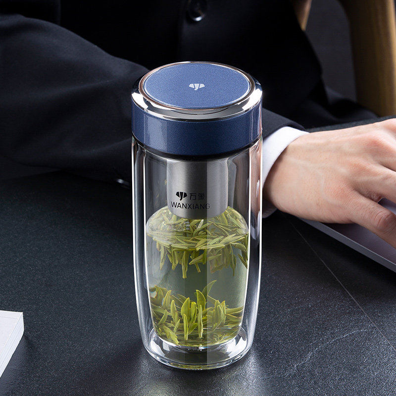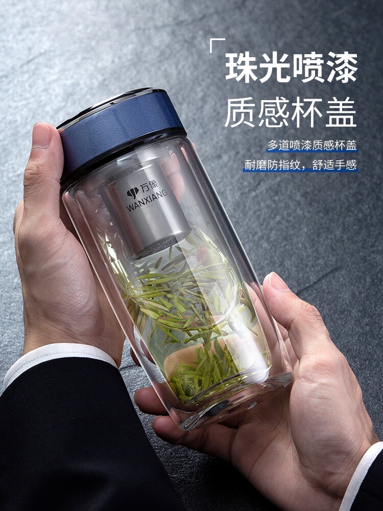 万象玻璃杯双层鹅蛋隔热杯子男女士高颜值水杯便携杯子带滤网茶杯