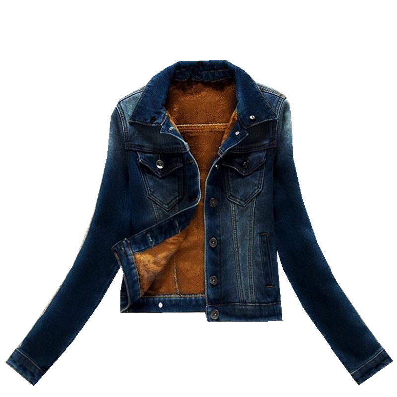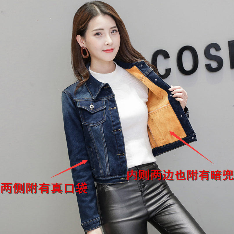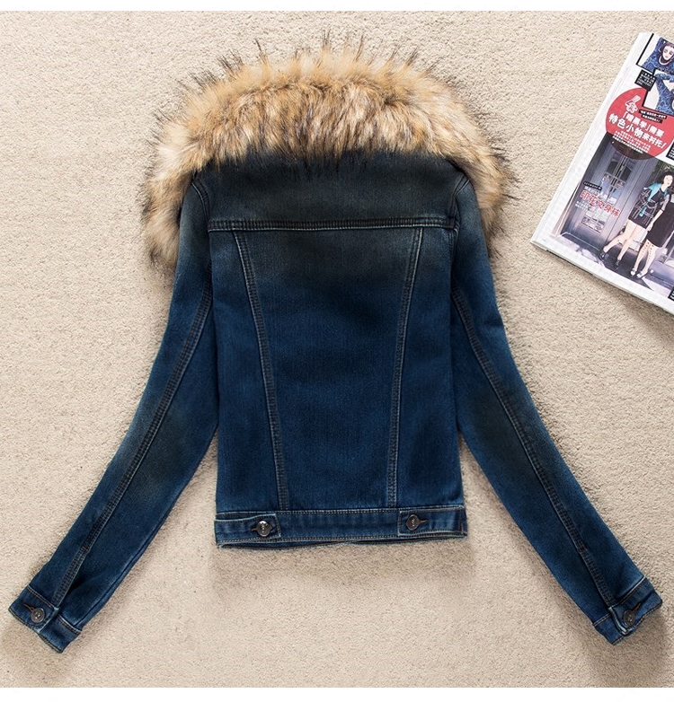2024春秋新款大毛领加厚加绒牛仔外套女短款长袖弹力夹克棉衣百搭