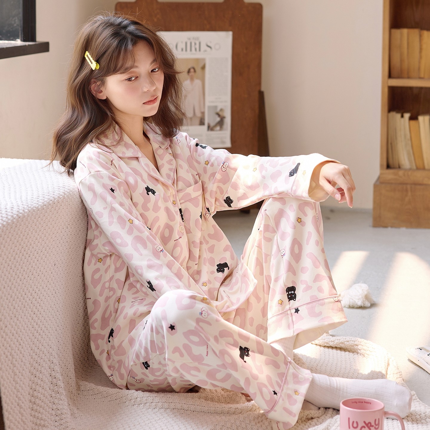 纯棉可外穿睡衣秋女款2025新款长袖开衫可爱甜美少女公主风家居服