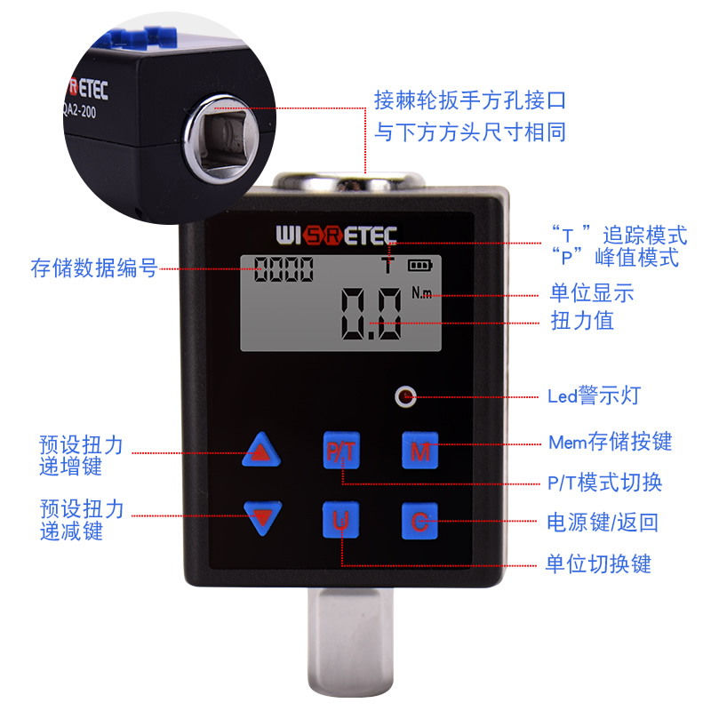 多功能电子数显扭力计0.3-340NM扭矩表接杆 扳手力矩测量汽修工具